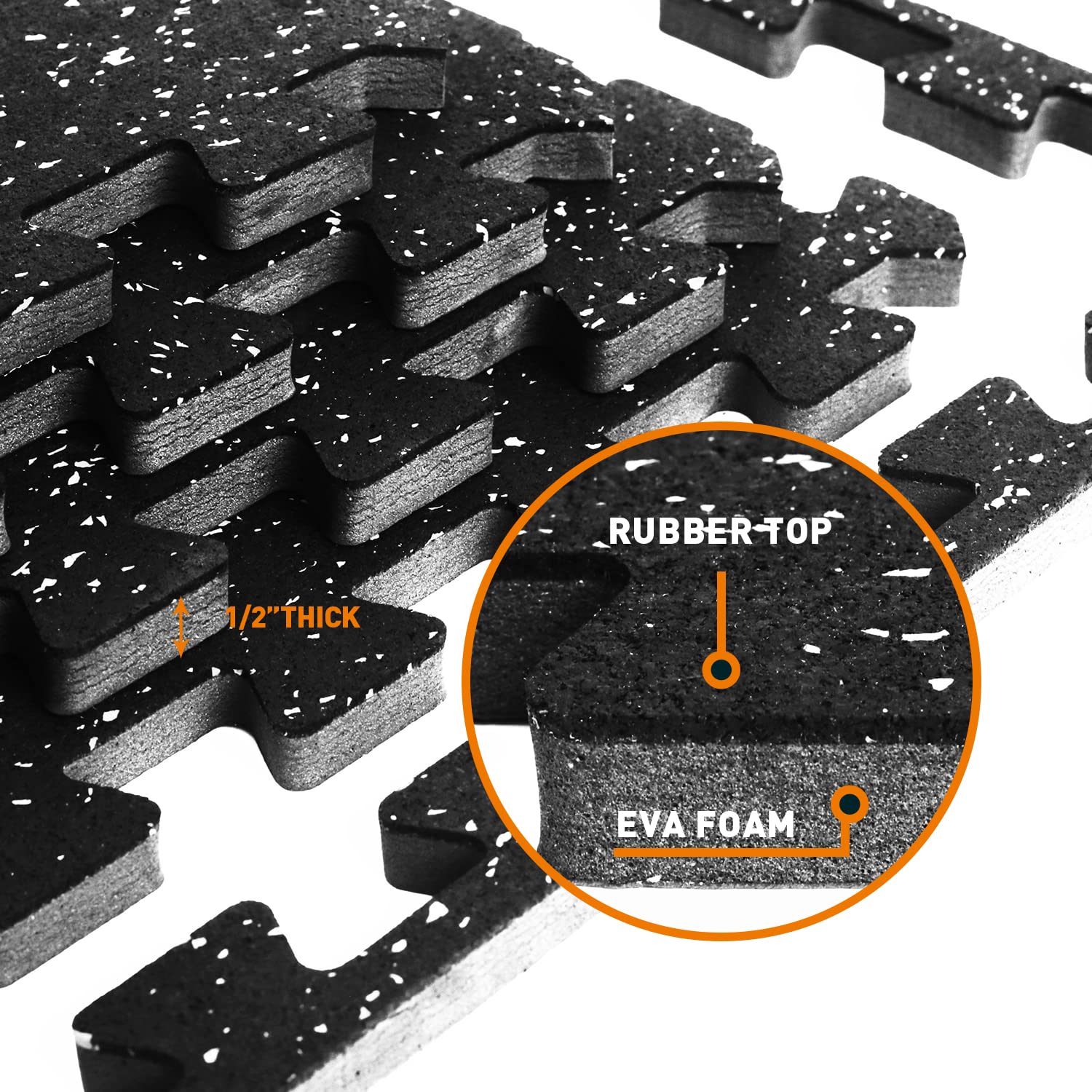 - Rubber Top - Better Choice for Home Gym: You will like the rubber top because the common EVA foam mats are too soft or flimsy for your home gym and all rubber fitness mats were too expensive. This double-layer mat is the perfect solution for working out at home, you will get the softness and affordability of the EVA foam with the sturdiness of the rubber layer on top