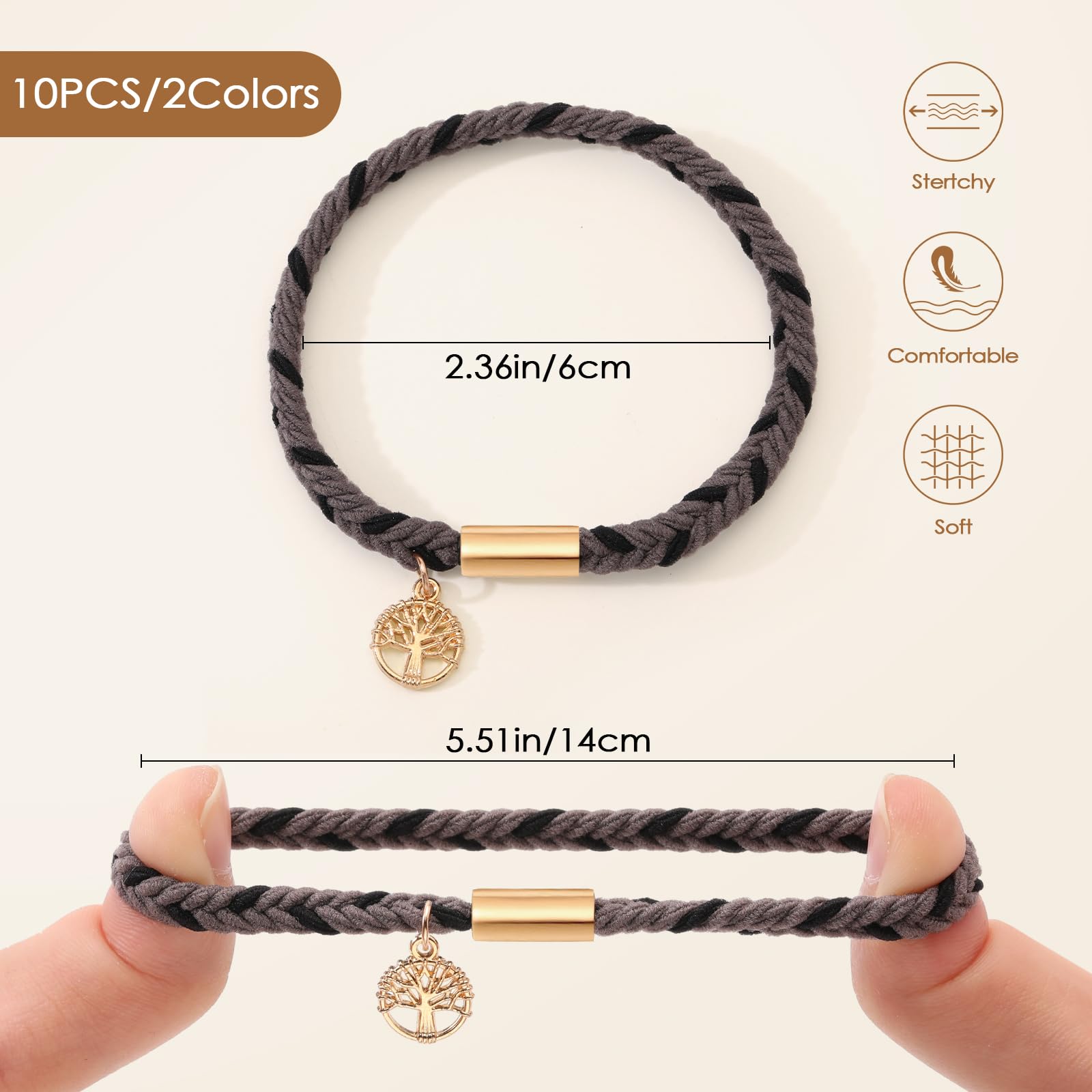 10 PCS Boho Hair Ties - No-Damage, 5 Styles for Thick & Thin Hair, Cute Stretch Bracelets, Braided Ponytail Holders, Grey