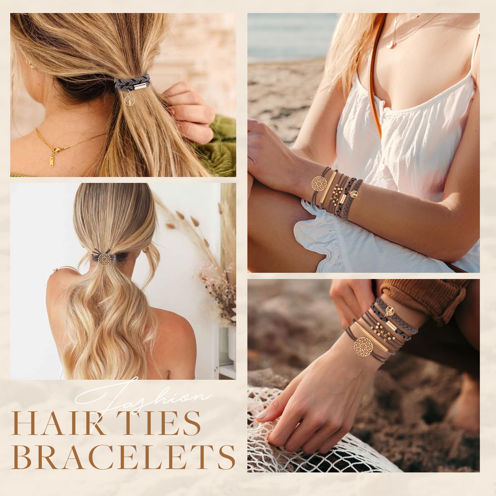 - ⭐【Ideal Gifts】These cute bracelets & hair ties are pretty gifts for women and girls. They'll be her new everyday bracelet set! You can get it for your mom, sister or daughter on birthday, Anniversary, Christmas, Thanksgiving Day, Valentine's Day and so on.