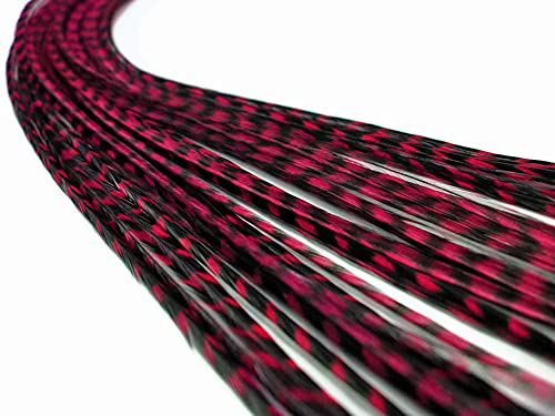 Details: This listing is for 10 individual premium quality genetic rooster hair extension feathers. Each of these claret feathers range from 7-11 inches. Sometimes longer. They can be as fine as 1mm - 2mm. These are long narrow rooster feathers that are soft and flexible. That is the reason why people use them on their hair.Similar to our Solid Pink, the Solid Claret offers a more sophisticated and deeper pink color. When the Hot Pink is a little too bright, this is the way to go! These claret feathers will blend well with other warm colors like red, orange, yellow and gold. These genetic rooster feathers are special breed of US for a very niche market. That is why they are rare and are perfect as feather hair extensions. Other uses include jewelry making, arts and crafts, party decorations and fly tying. You can wash, blow, dry and curl them. Put them in your hair and they will last for weeks with proper care!These claret feathers vary widely in shape and size and all feathers are in good condition. Some ends might not be perfect but you can easily trim them with scissors.Wholesale and bulk purchase of the long rooster hair extension feathers is available upon request.