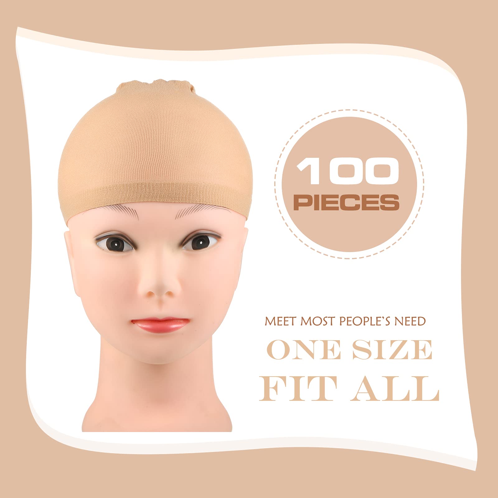 100 Pieces Wig Cap Elastic Medium Nylon Stocking Caps Stretchy Stocking Wig Caps Secure Your Hair, Lightweight, Breathable (Skin)