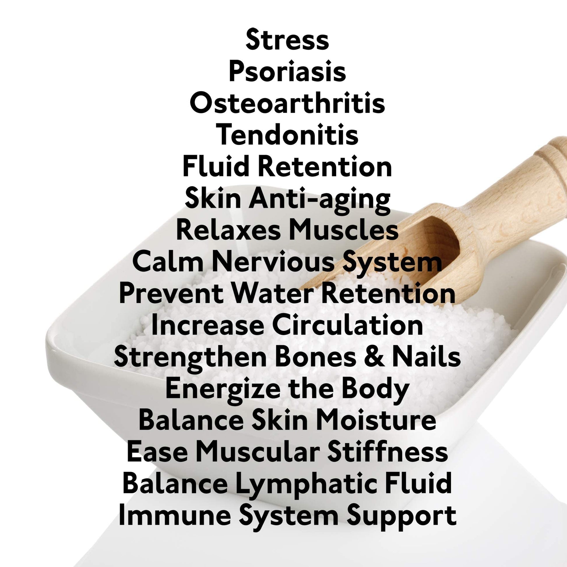 - Improves Skin Condition: Medical studies prove that our bath salts can improve skin conditions like psoriasis and eczema. It's more effective than dr teals, sulfur soap, or foot soak and acts as an excellent body exfoliator.