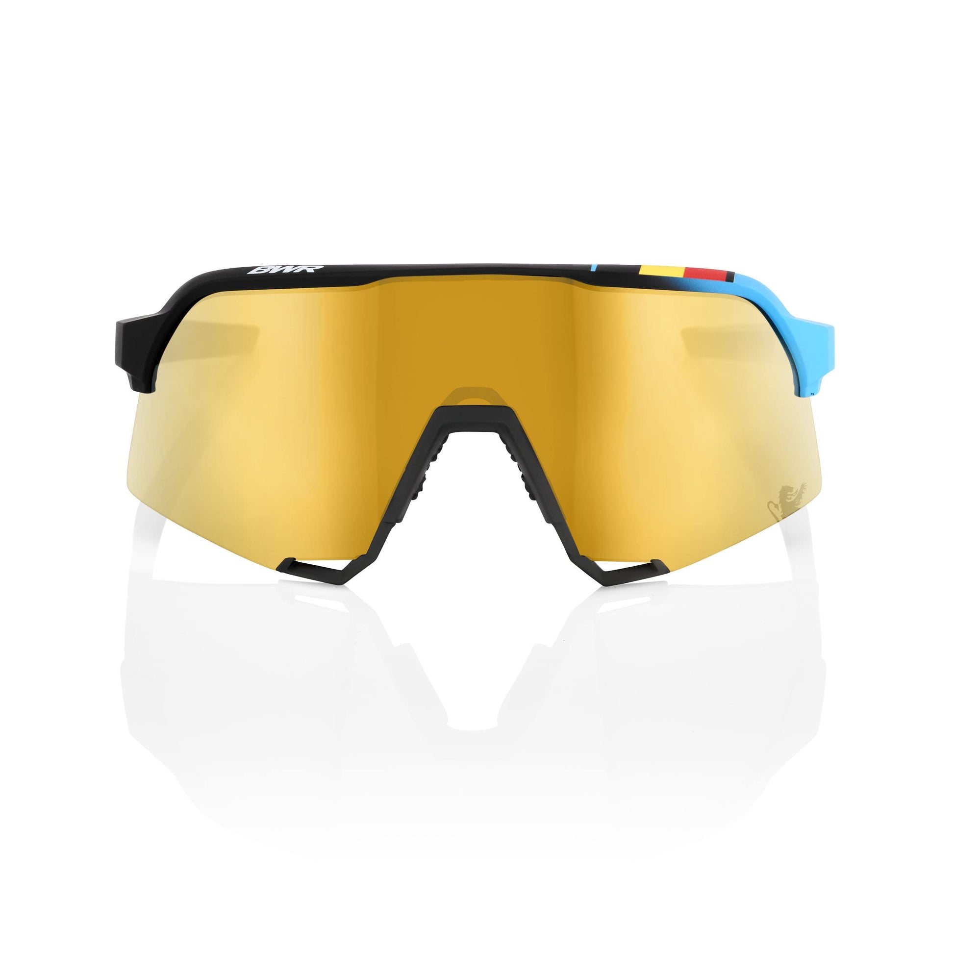 100% S3 Sport Performance Cycling Sunglasses (BWR Black - Soft Gold Mirror Lens)