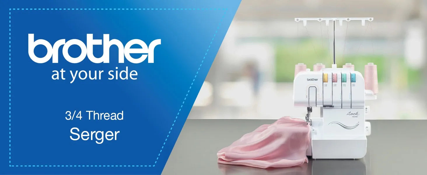 The Brother 1034D serger features a 3/4 lay-in thread system with lower looper threader.Stitch options include 4 thread overlock 3 thread overlock narrow hem rolled hem and ribbon lock stitches.Additionally you can sew blind hem pin tuck and flat lock stitches by purchasing optional presser feet.The machine has a free arm/flat bed convertible sewing surface.The 1034D also offers a F.A.S.T. lower looper threading system for easy thread changes.The differential feed improves sewing results on stretch or thin fabrics to give you a perfect finish. Snap-on presser feet allow quick and easy changes to transition to each desired stitch. This machine does not conform to International electronic codes. Warranty is voided outside the US.