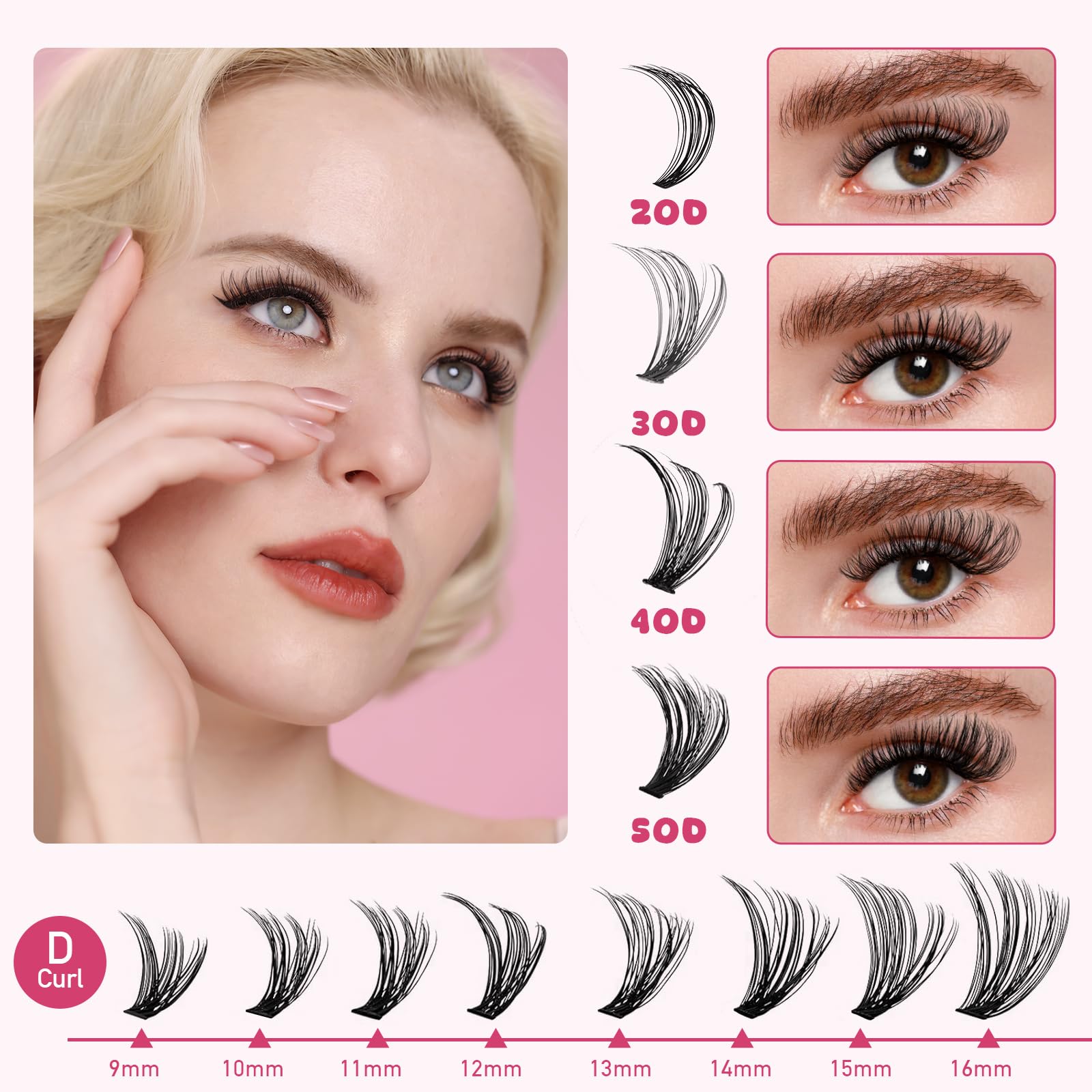 - Ultra-Thin Band for Enhanced Comfort: 0.1mm Lash Bands, naturally blend in with your own lashes. Our cluster lashes look real and have gorgeous results. These Individual lash clusters will not be broken when getting them off the backing with tweezers. High-quality materials ensure softness, thickness, and durability.