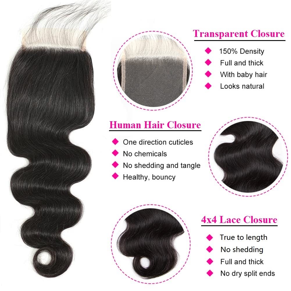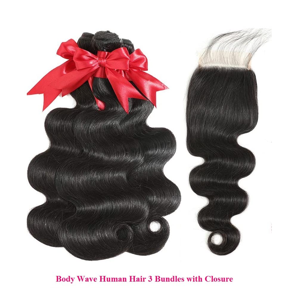 - Human Hair Material: 10A Brazilian Virgin Hair Body Wave Bundles with Closure, 100% Unprocessed Human Hair Bundles with Closure Body Wave, Soft and Silky to Touch, Elegant and Comfortable to Make Quick Weave Or Wig