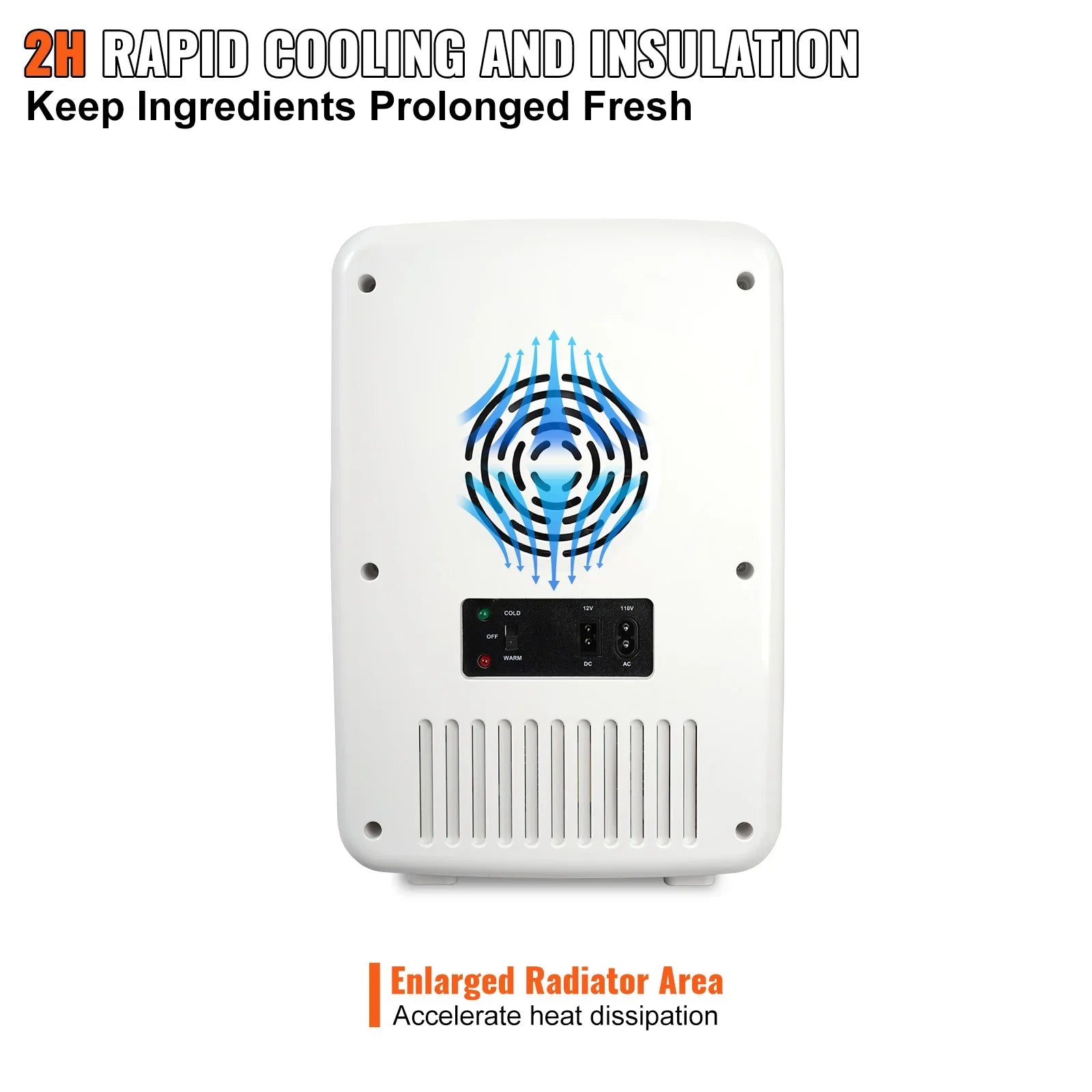The VEVOR 10L Mini Fridge is a compact and efficient cooling and warming solution designed for convenience and versatility. Whether you're storing beverages, skincare products, medications, or snacks, this stylish mini fridge keeps your essentials at the perfect temperature.