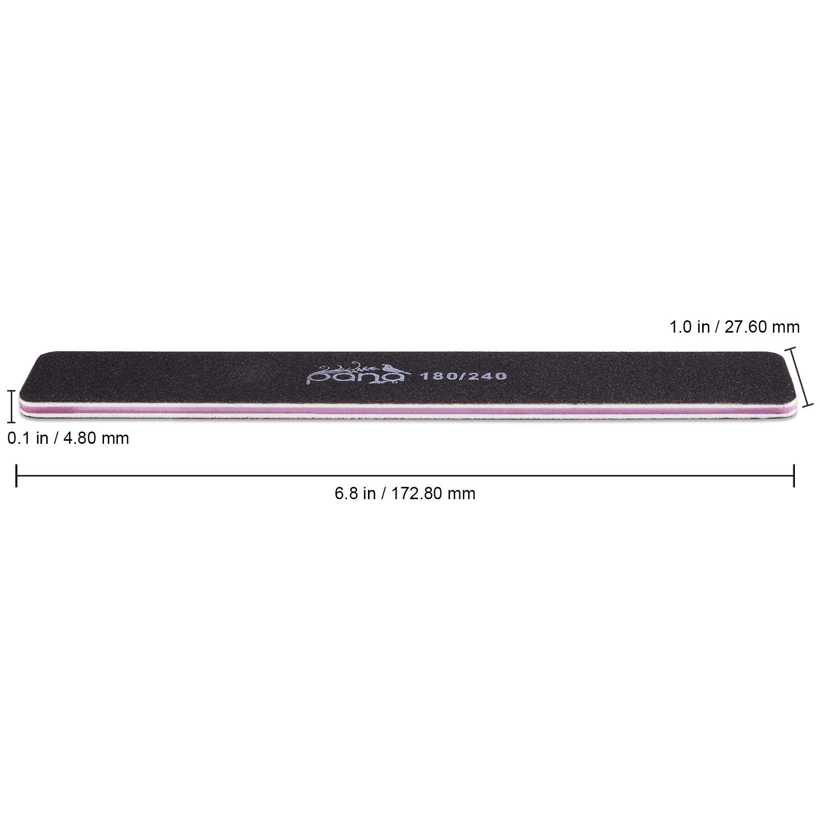 - Quantity: 10 pcs. | Color: Black | Grit size: 180/240 | Measurement: Length: 6.80 Inches | Width: 1.00 Inches | Design: Double sided jumbo emery nail file