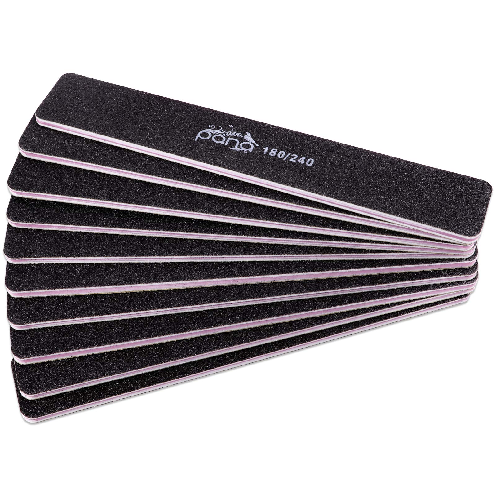 10PCS Jumbo Size PANA Professional Double Sided Nail Files - Black, 180/240 Grit - Emery Board Nail Buffering File Manicure Pedicure Nail Polisher Washable