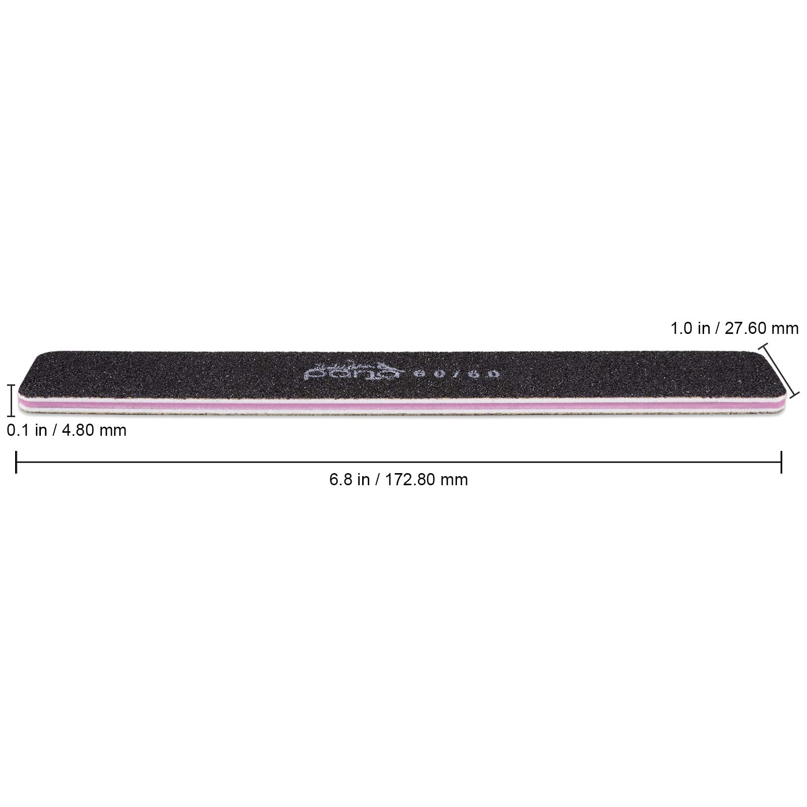 - Quantity: 10 pcs. | Color: Black | Grit size: 60/60 | Measurement: Length: 6.80 Inches | Width: 1.00 Inches | Design: Double sided jumbo emery nail file
