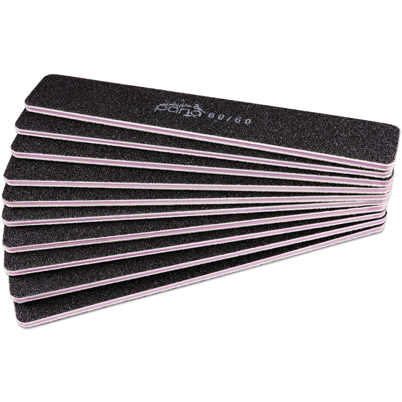 10PCS Jumbo Size PANA Professional Double Sided Nail Files - Black, 60/60 Grit - Emery Board Nail Buffering File Manicure Pedicure Nail Polisher Washable
