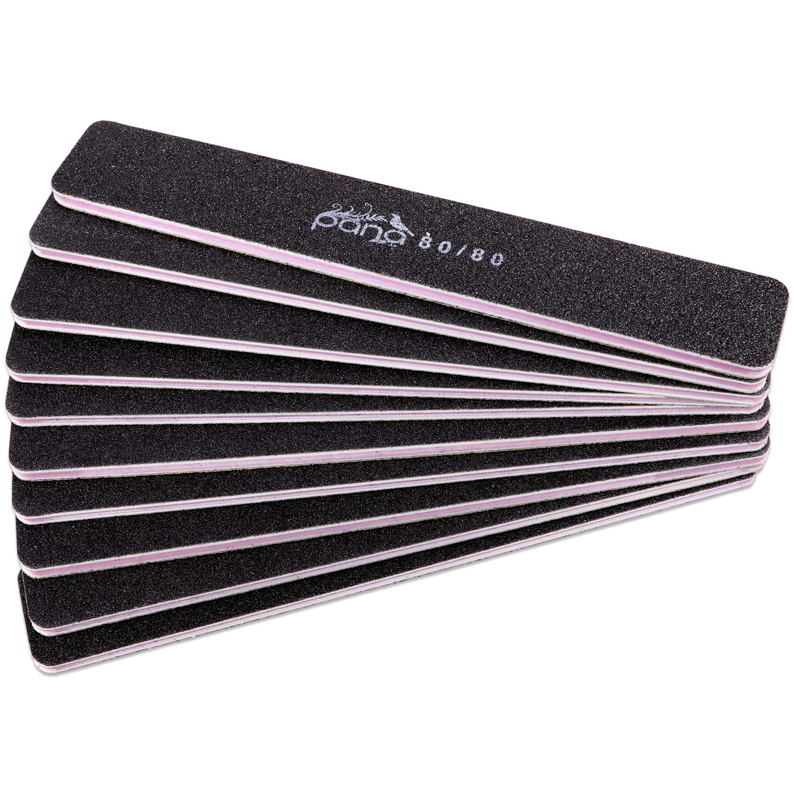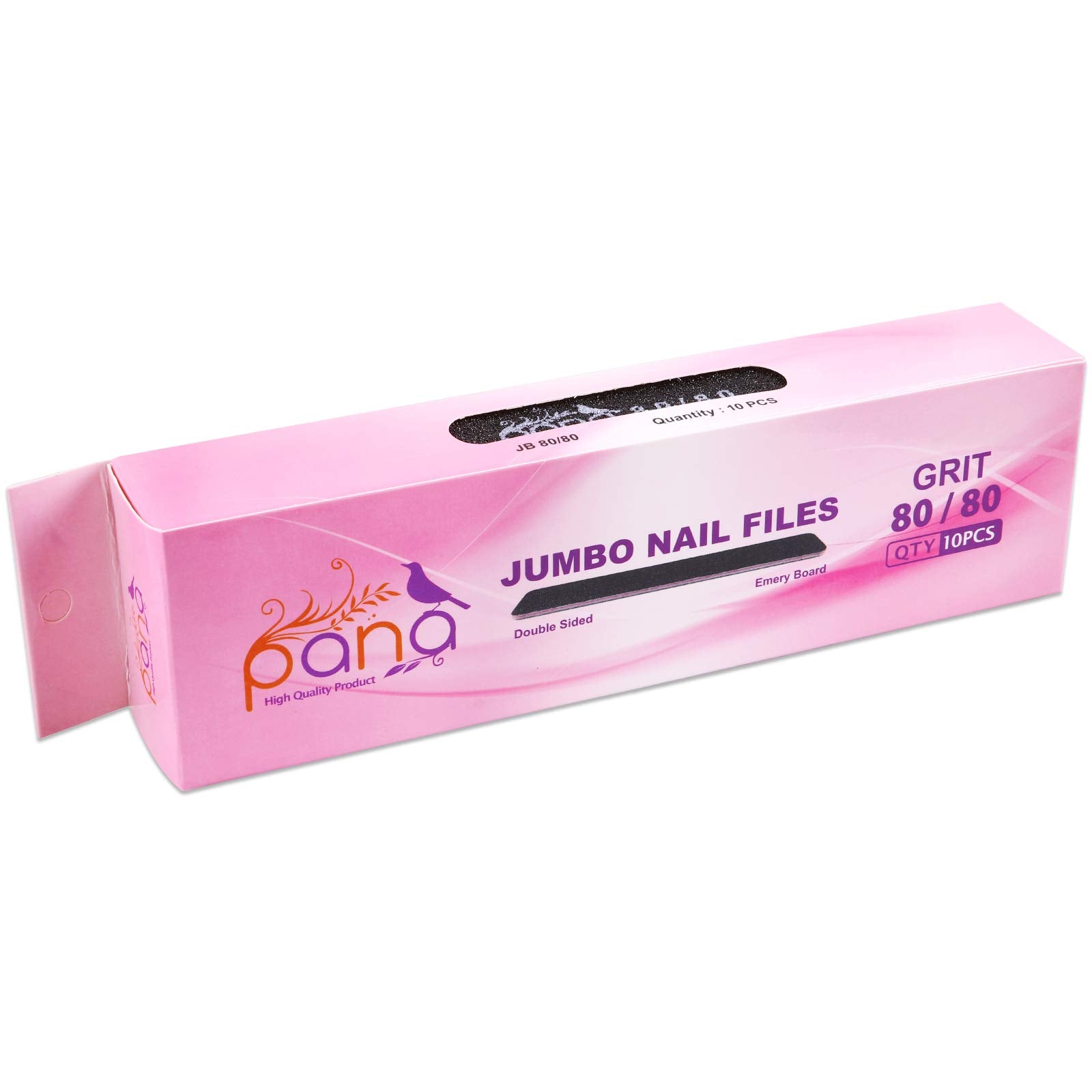 10pcs - PANA Jumbo Double-Sided Emery Nail File for Manicure, Pedicure, Natural, and Acrylic Nails - Black (Grit 80/80)