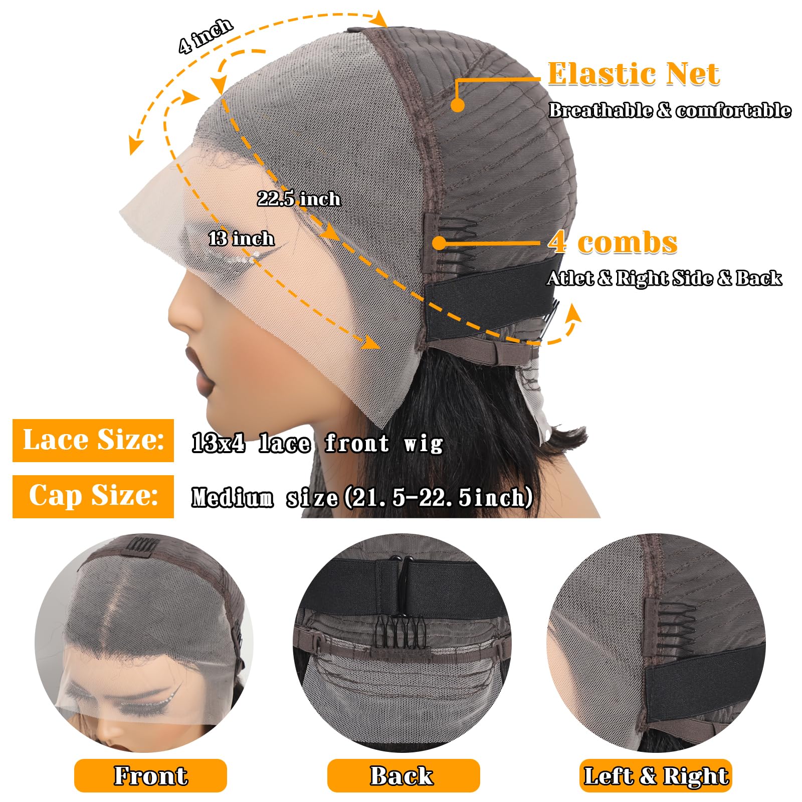 - 【Bob Wig Human Hair Pre Plucked Cap Size】13x4 Straight Bob Glueless Wigs Human Hair Pre Plucked, Medium Cap Size(22 inch - 22.5 inch), Fit Most People, With 4 Combs And Two Adjustable Straps Make It Easy To Install, Breathable & Durable Lace Material Make It More Comfortable,You Will Feel Like Your Own Hair.