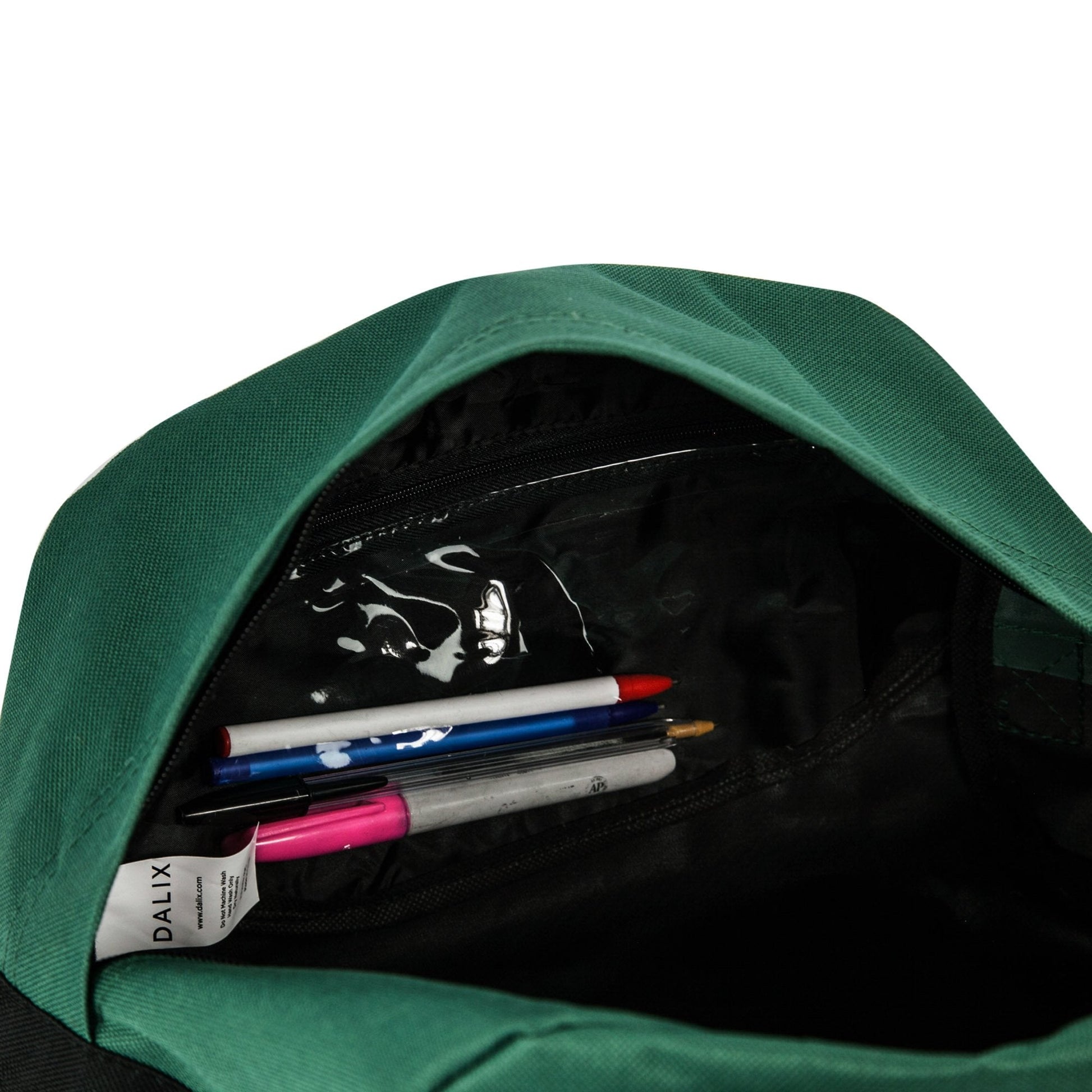 - FEATURES: Zippered main compartment w/ zippered front pocket, top handle and side handle.