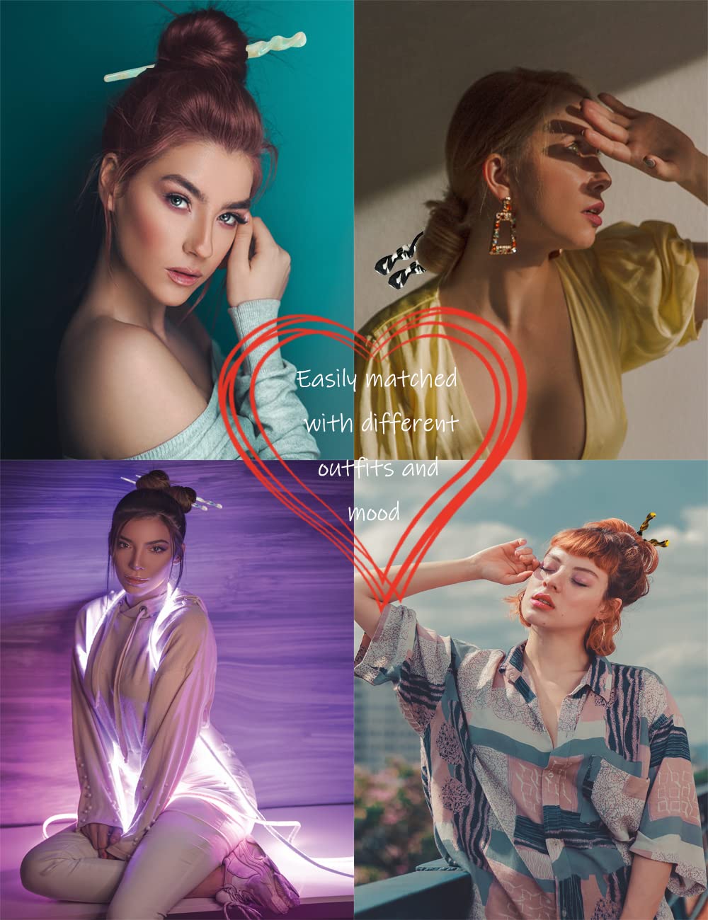 - 🌸Applicable Occasions:The hair chopsticks for women set is suitable for most formal or casual occasions, such as appointment, parties, costume proms, performance, anniversaries, dating, holidays, clubs, you can also DIY more different hairstyles to attend various kinds of occasions