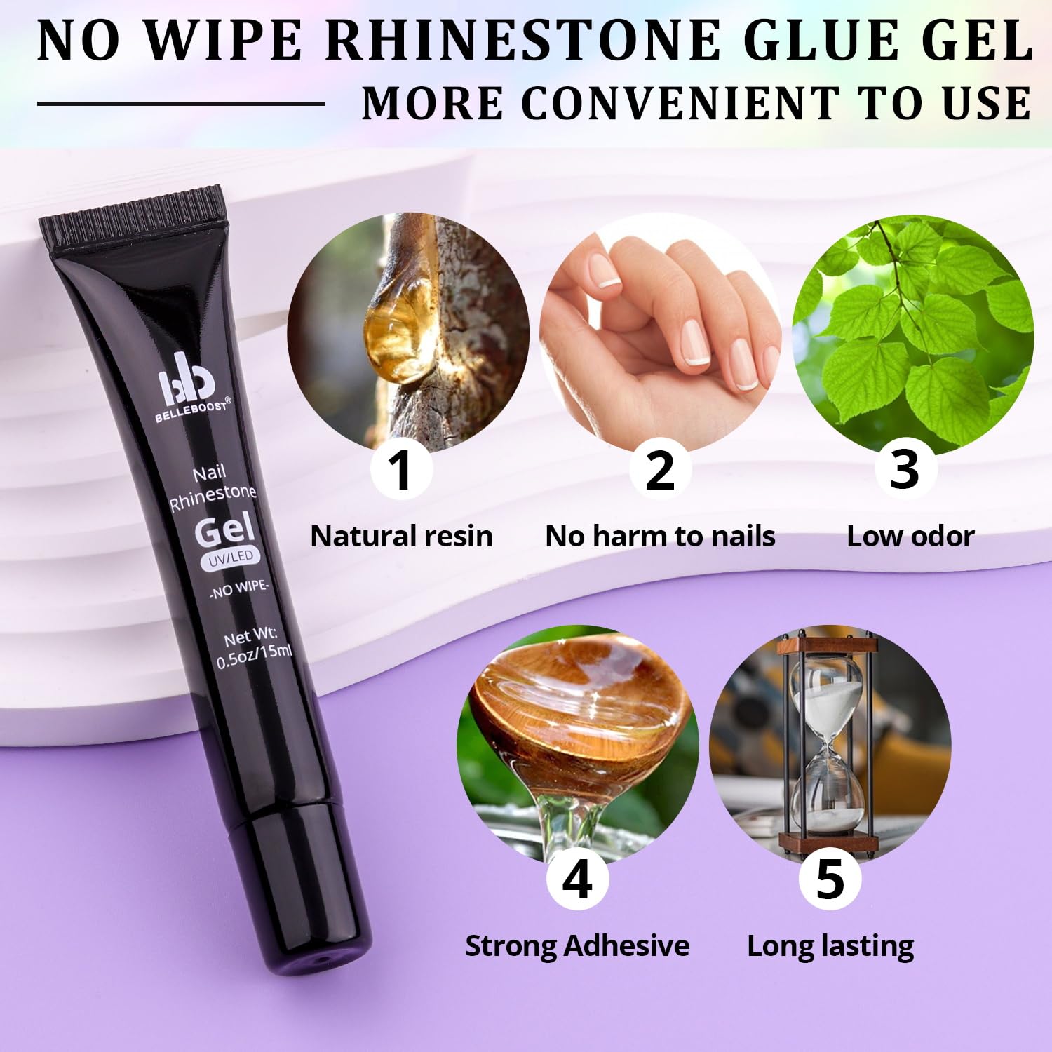 - π No Wipe Nail Charm Glue Gel: The nail charm glue(UV/LED Needeed) is made of natural resin. It is environment-friendly and does not harm your nails. The tube design make you easy to control the amount for your convenience. It is also with strong adherence after being cured and hold the charms on your nails for long.