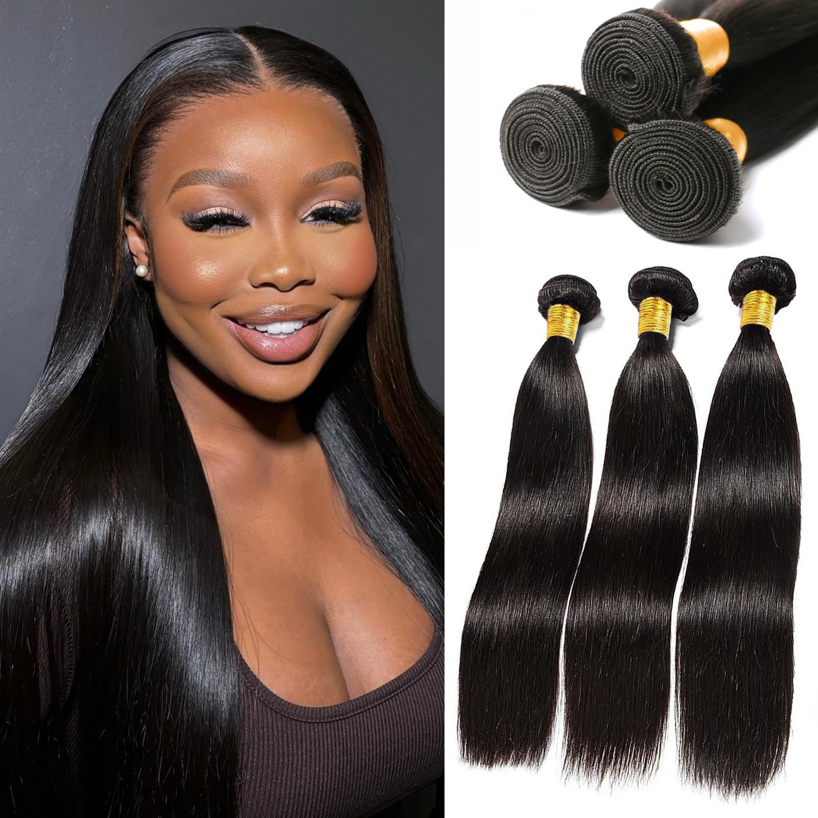 Details: Human Hair Bundles Material: 100% Unprocessed Brazilian Virgin Human Hair Bundles Cut From One Young Donor Directly,Silky, Soft No Smell, No Chemical Processing. Bundles Human Hair Quality: 12A Grade Brazilian Weave Bundles Human Hair, Double Machine Strong Human Hair Weft Made,Tight And Neat Weft,No Tangle, No Shedding,Soft and Full,Can Be Straightened, Curled, Bleached Dyed and Restyled. 3 Bundles Human Hair Feature: Natural Black Color, Each Bundle Is 95-100g, True to Length, Full Enough to Make a Full Head(10'-20' Need 3 Bundles,22'-30' Need 4 Bundles). Straight Bundles Human Hair Mode of Use: You Can Sew In Hair Bundles,Quick Weave Hair Bundles,Make A Wigs Or Make A Ponytail,Make Body Wave Bundles Human Hair.Can Last More Than 6-12 Months. Brazilian Bundles Human Hair Occasion: Human Hair Bundle Deals Suitable for Party, Birthday, Wedding, Holiday, Travel, Graduation.