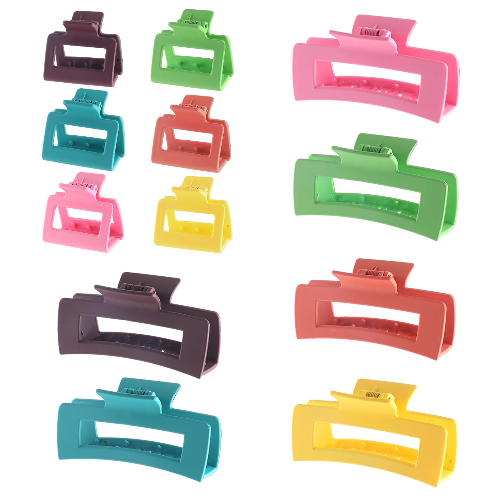 - Package: rectangle hair clips includes 6 large rectangle claw clips, and 6 medium hair claw clips with the same color.12 Pack Colorful brown blue red green yellow trendy .The multi-color clips could meet your all hairstyle and match different color clothes. keep beautiful and elegant on your hairs.