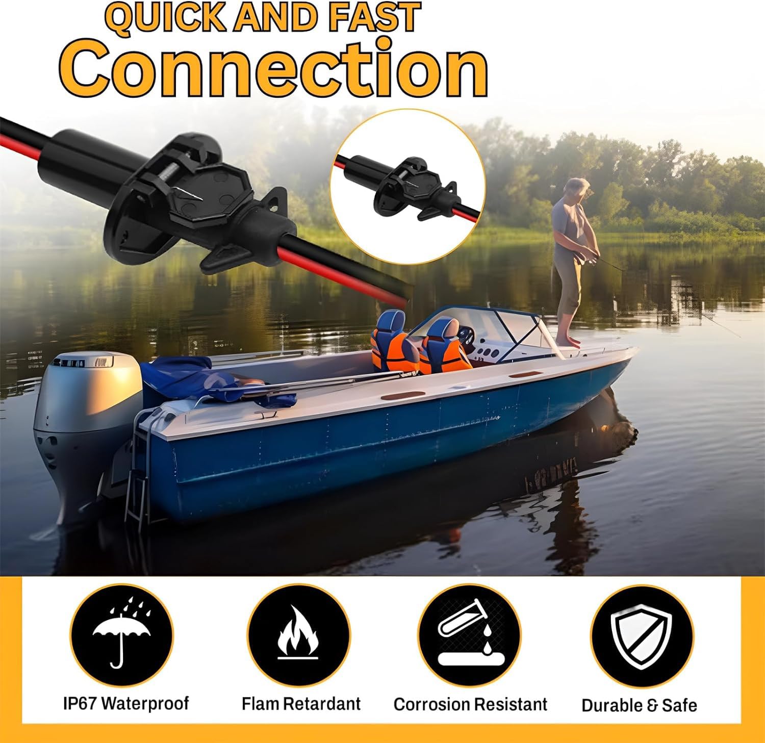 - 【Enhanced Quick-Charge Technology】Featuring 8 AWG marine-graded tinned wires, our 12V trolling motor plug enables faster, more efficient charging with reduced resistance.