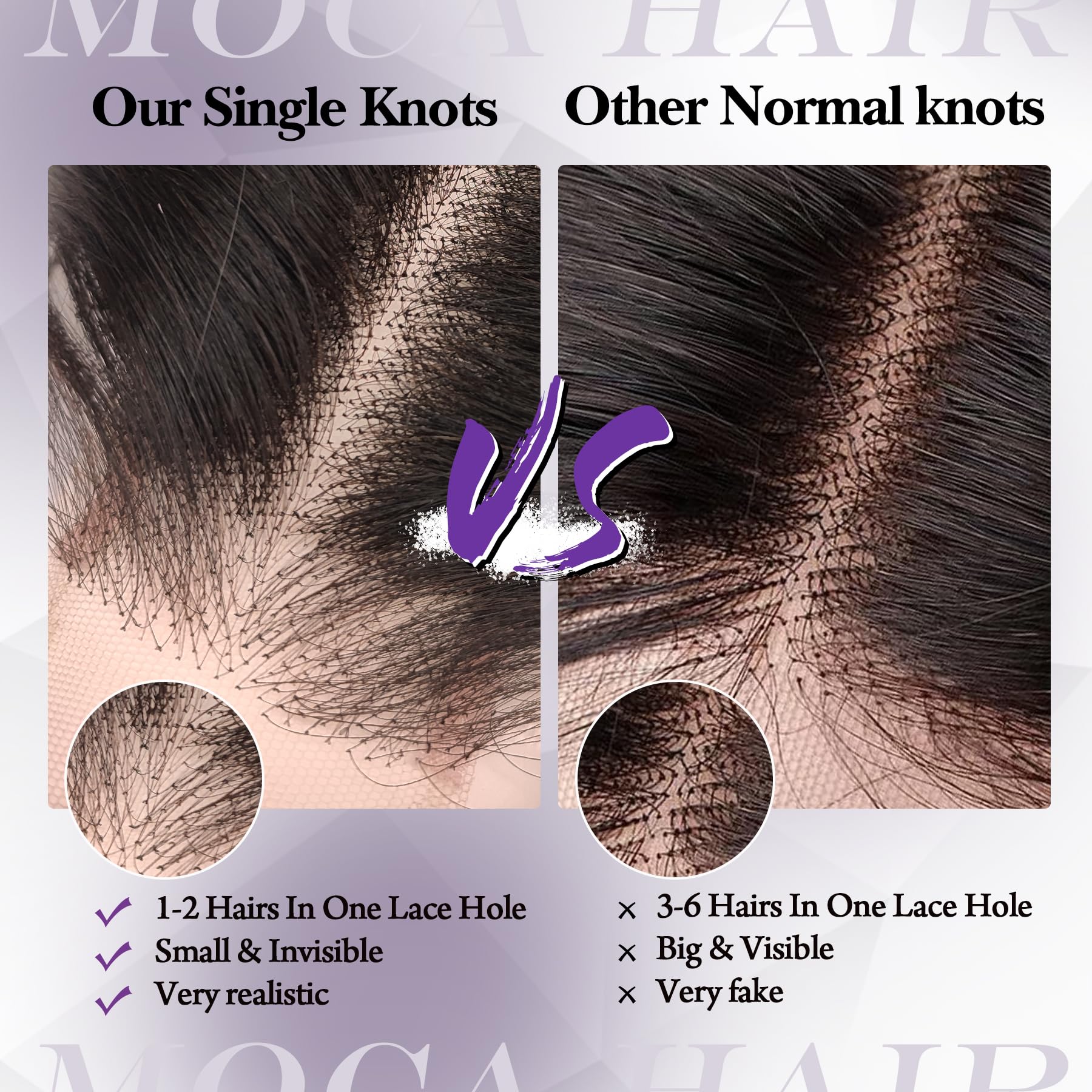 - Pre-bleached & Single Knots Process: Using pure hand-hooked single knot process, the single knot as the smallest knot can be truly invisible and inconspicuous when seen up close, the pre-bleached hairline and knots allows the closure to easily blend with any skin color, quick to wear