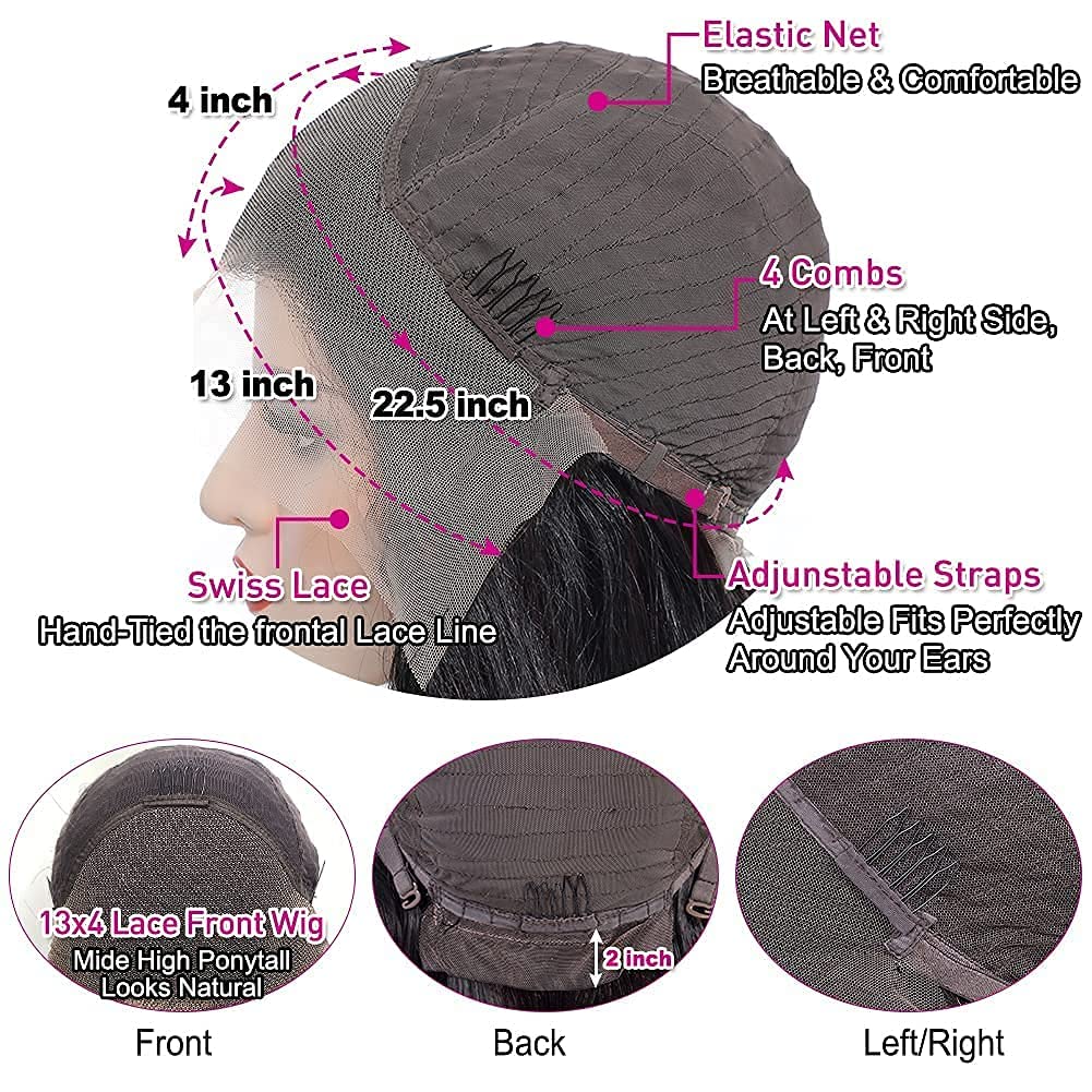 - 【Human Hair Wig Cap Size】Lace Front Wigs Human Hair Pre Plucked, Longer Hairline, More Natural. Breathable Mesh Cap, Hd Lace Front Human Hair Wigs ,Color Like Transparent Lace As Your Skin, Average Cap Size About 21.5-22.5 Inch, Adjustable Straps And 4 Combs, Match Most Head Perfectly.