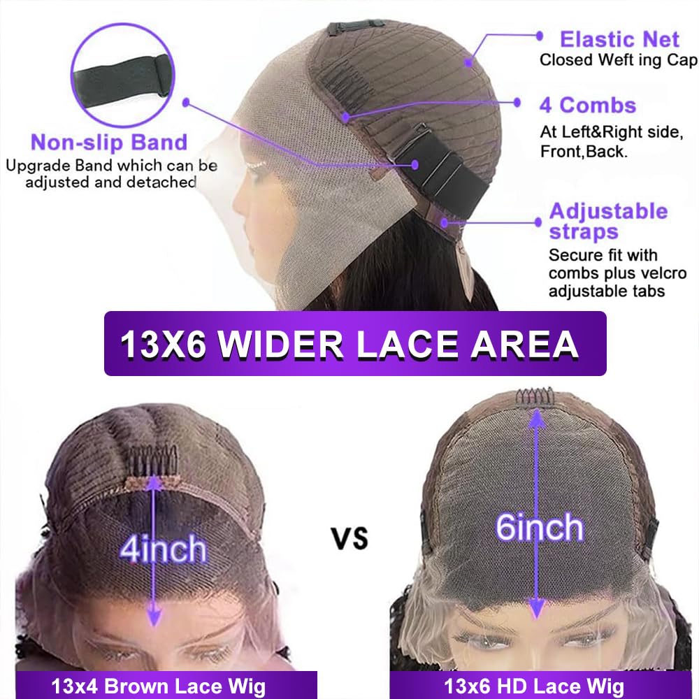 - Suitable Wig Cap Size- 13x6 deep wave wig has 3D dome cap, 21.5-22.5 inch average cap size of deep wave lace front wigs human hair suitable for mostly women, 200% density glueless deep wave wig human hair with full elastic adjustable straps and 4 combs, can be adjusted to different sizes which can match your head perfectly,bring you a perfect wearing experience