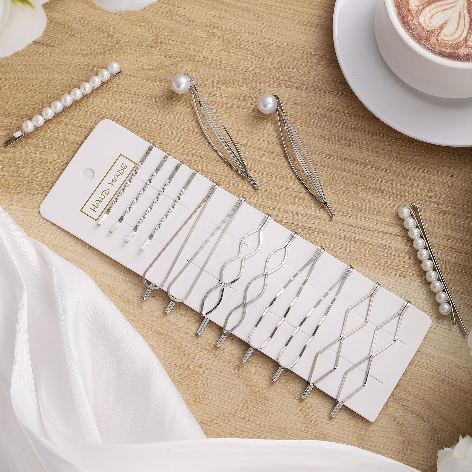 - Set Including: This geometric metal hair clips set includes 16 silver minimalist hair clips, 4 different styles with wavy, triangular, ellipse, smooth surface.
