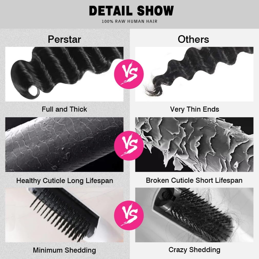 - Raw Human Hair Material: 100% Unprocessed 16A Brazilian Raw Virgin Human Hair Bundles, Cut from One Young Donor Directly, Soft and Healthy, Full Cuticle, No Split, No Synthetic Hair or Animal Hair Mixed