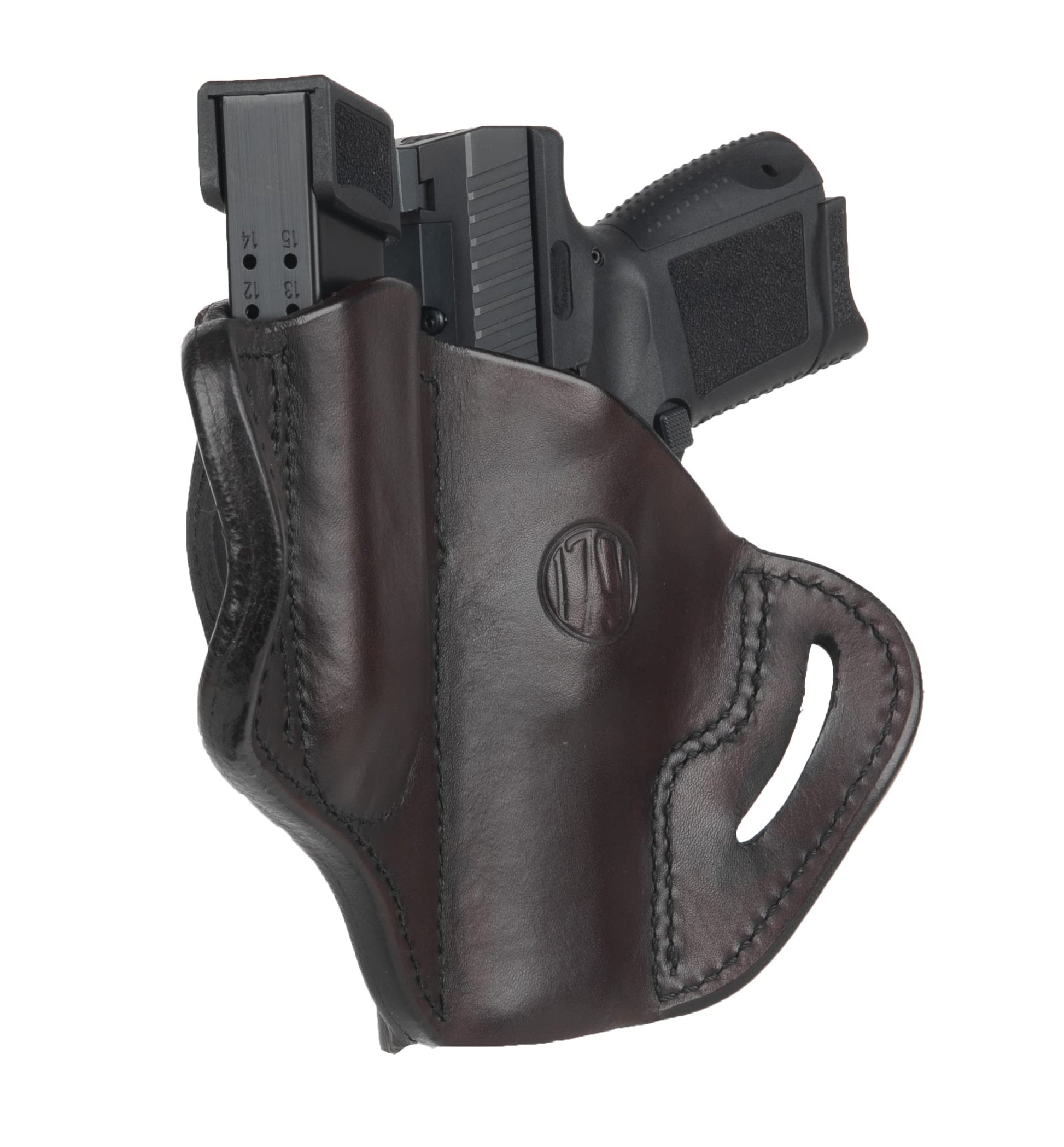- VERSATILE FIT: This open carry belt holster is fits compact guns with 4 inch barrels flush and is designed for the smaller carry versions of full frame firearms. Compatible with Sig Sauer P320c, P229c, P227, M11-A1 Compact, M-18, H&K VP9sk, P2000, 45c, Springfield Armory Sub Compact 9mm, XDm compact 3.8, Ruger 9mm P95 and Security 9, Taurus TX22. IWI Jericho Enhanced, 941 F9, Masada 9mm, Canik TP9S, Walther PPQ M2, FN 509c, This holster also includes a extra slot for a double stack magazine.