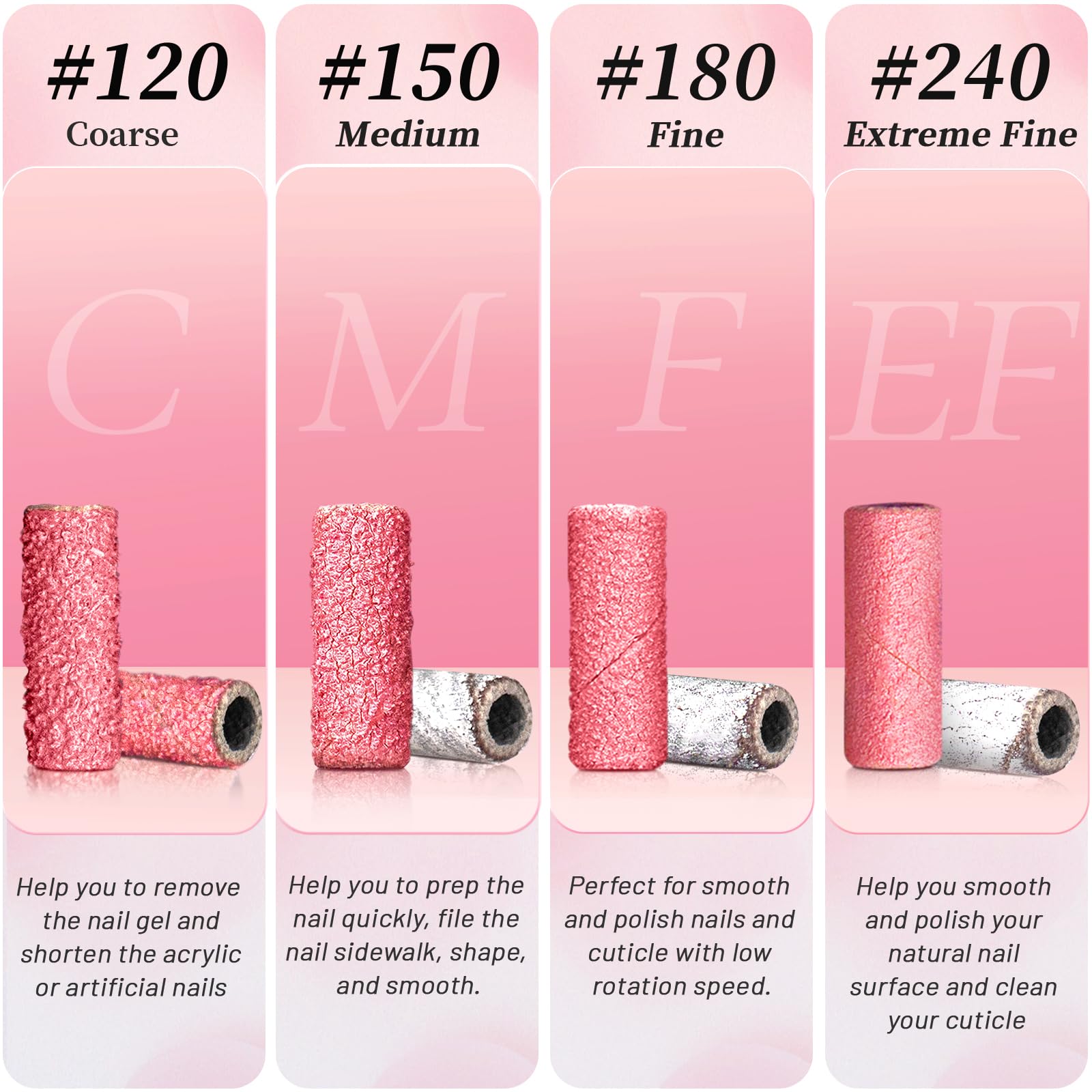 - 180 Grit Mini Sanding Bands For Nail - Fine Grit: The small nail sanding bands 180 grit are commonly focus on shortening, shaping and polish natural nails and cuticle with low rotation speed. Fine sanding bands for nail, suitable for nail tech, nail art love and nail beginner, manicures and pedicure