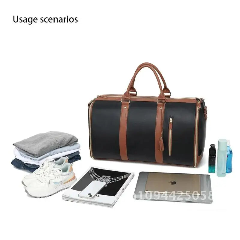 1pc Foldable PU Travel Convenient Carry-on Clothing Bag Women's Bag Bag Leather Business Duffel Women's Large Travel