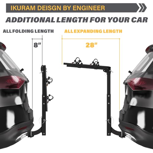 - Dual-Arm Mounting Design: Optimized dual-arm bike carrier rack which spacing accommodates bicycles of a wide range of frame sizes and designs, more stable and easily accommodates up to 2 bikes.
