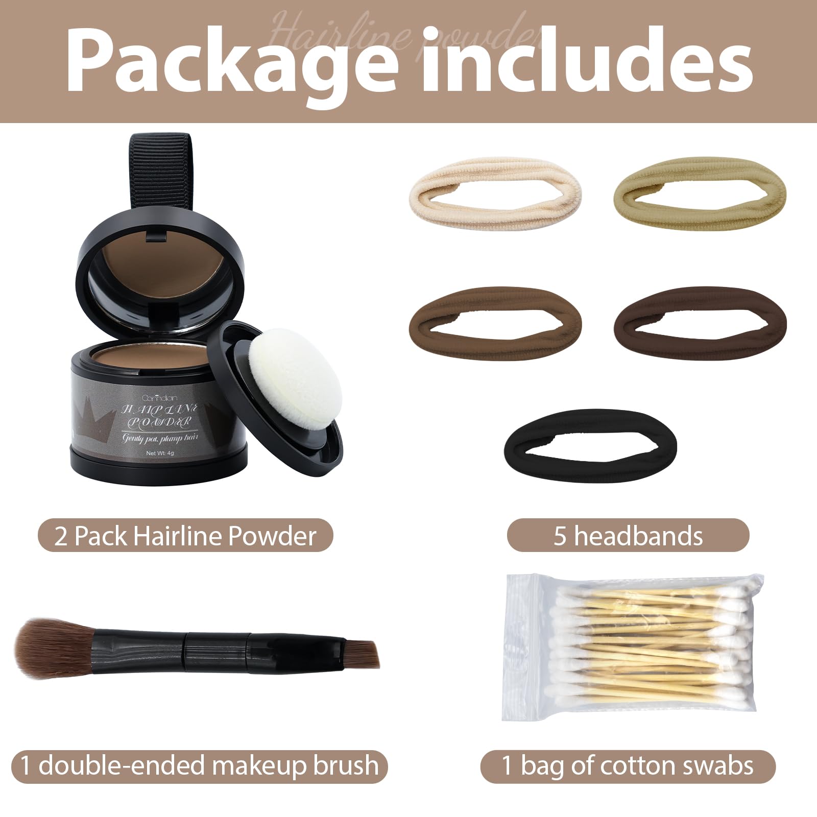 - Value Package: Our set not only contains two bottles of high-quality hairline powder, but also carefully prepared five fashionable rubber bands, a practical ended makeup brush and a bag of cotton swabs for you. Double the powder means double the beauty and convenience