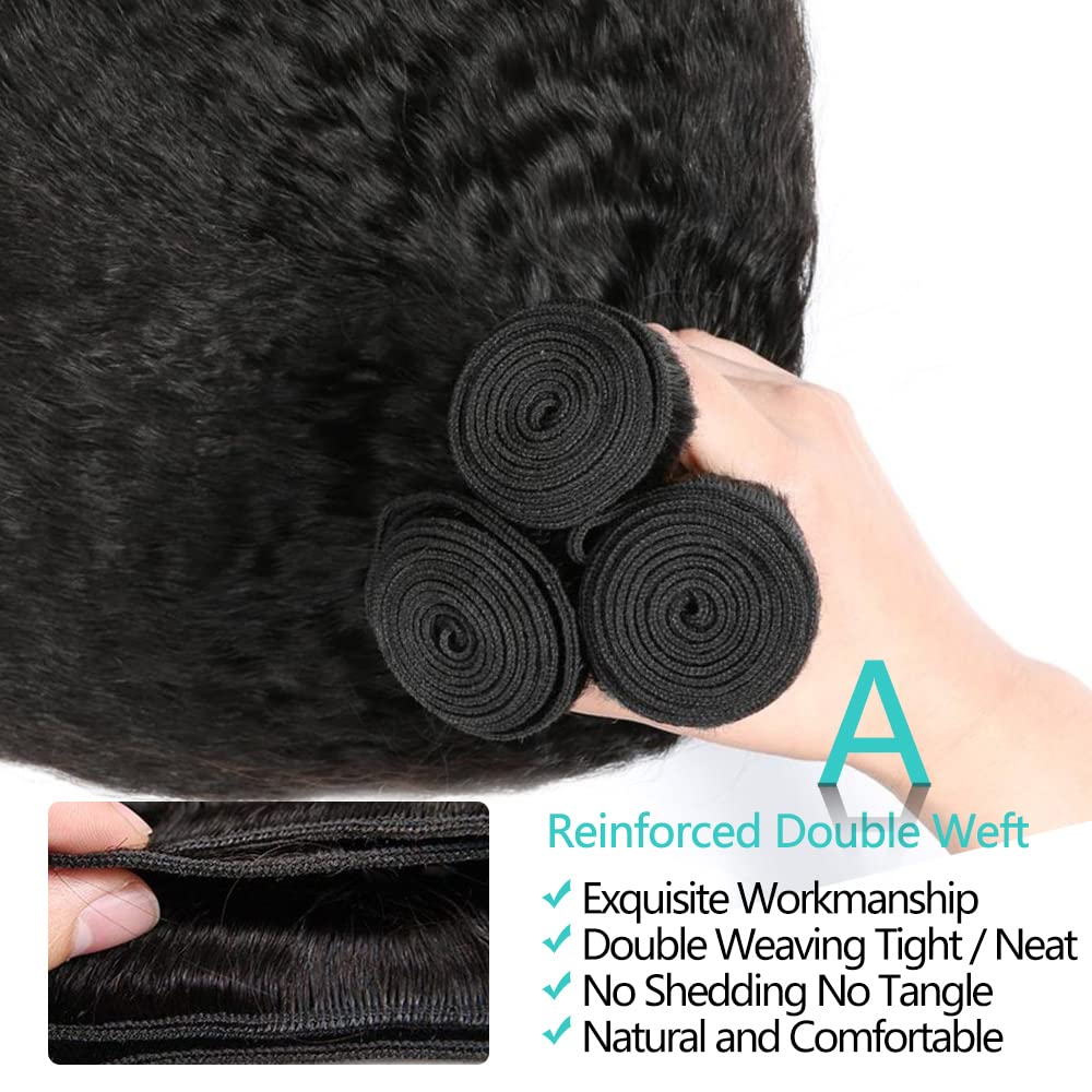 20 22 24 Kinky Straight Human Hair Bundles Yaki Straight Human Hair Extensions 100% Unprocessed Brazilian Virgin Remy Hair Kinky Straight Human Hair For Black Women Natural Black