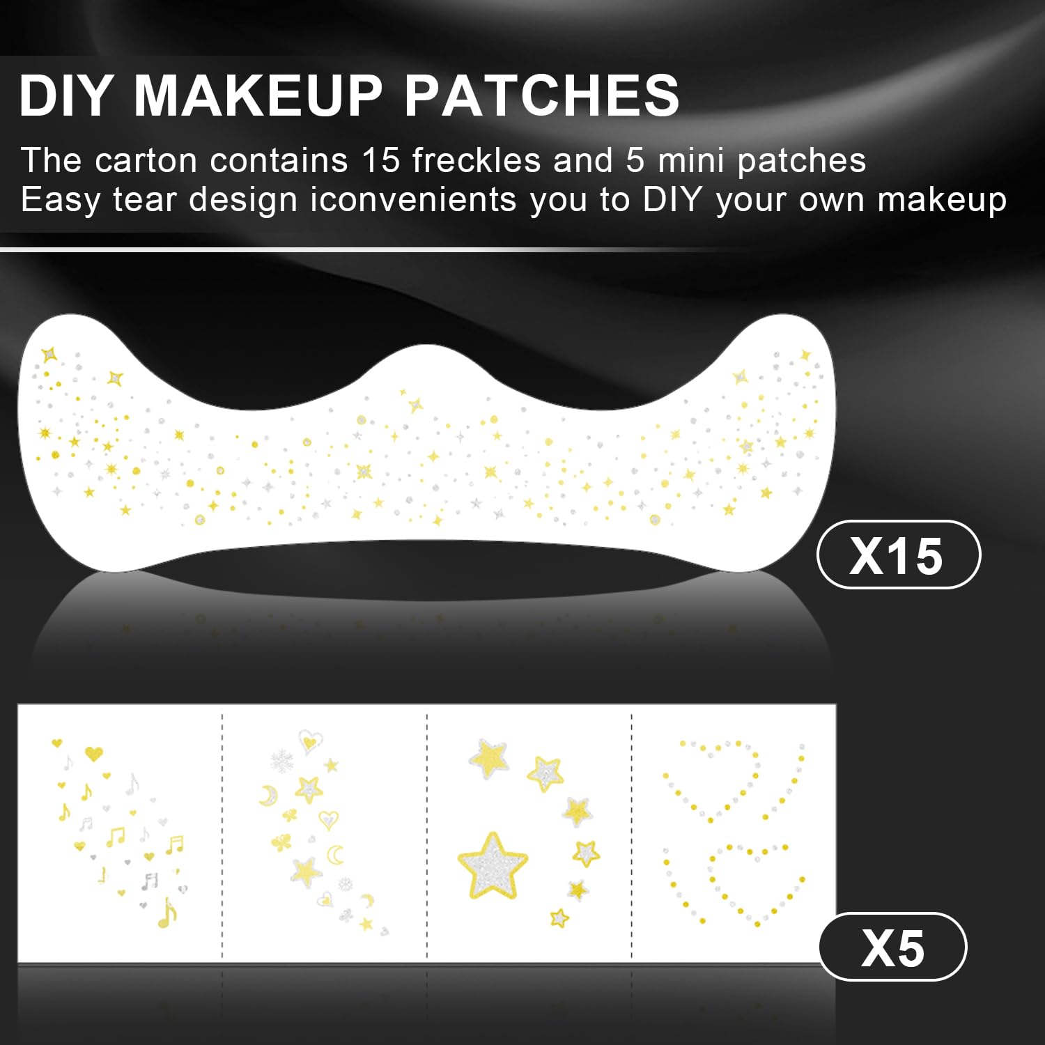 - DIY Fashion Sparkle Freckles: This package includes 15 pieces of glitter freckles and 5 pieces of mini patches.You can match them to DIY your own instant glam look.
