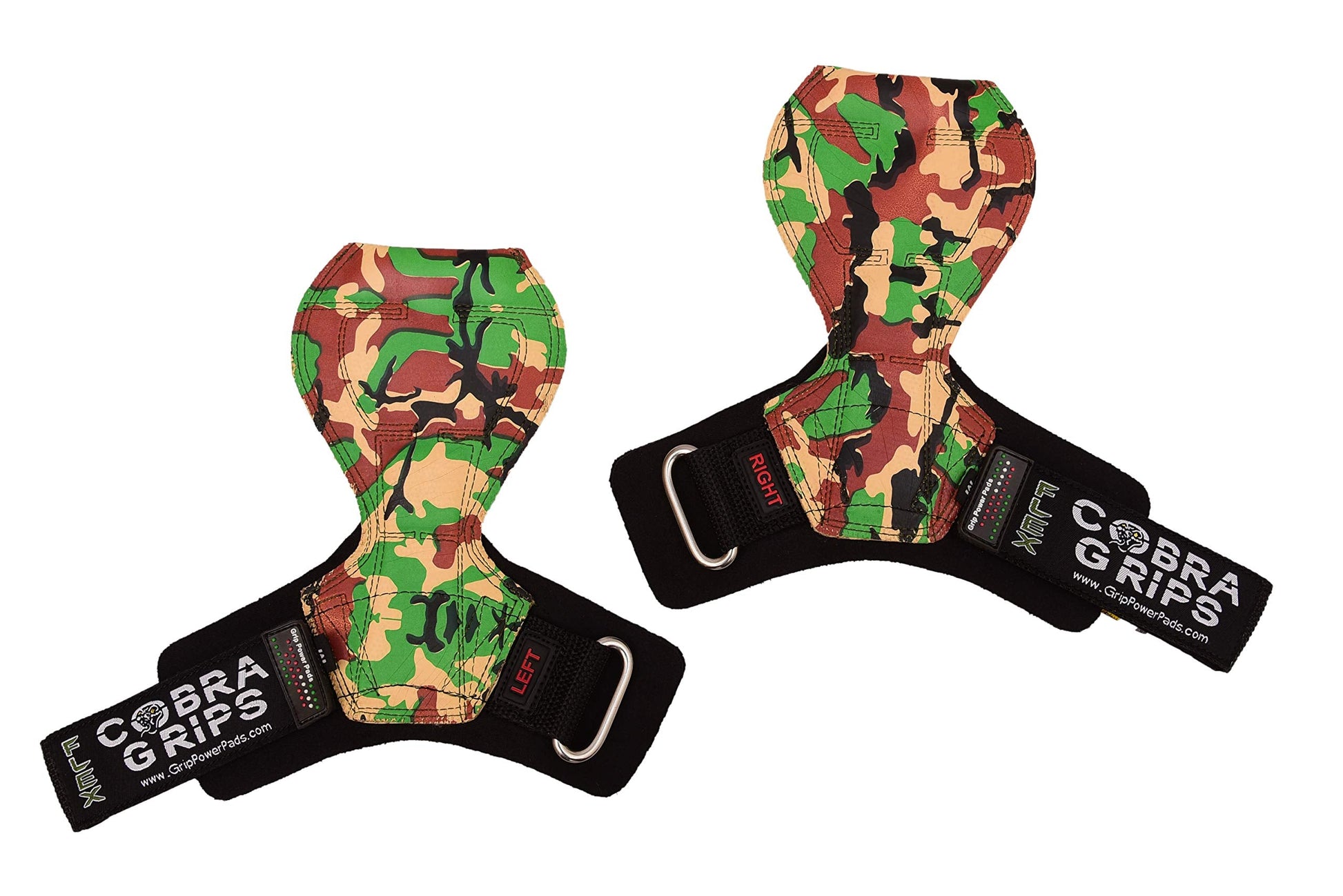 2018 Cobra Grips Flex Model Weight Lifting Gloves Heavy Duty Straps Alternative Power Lifting Hooks Best for Deadlifts with Padded Wrist Wrap Support Bodybuilding (Small, Green Camo)