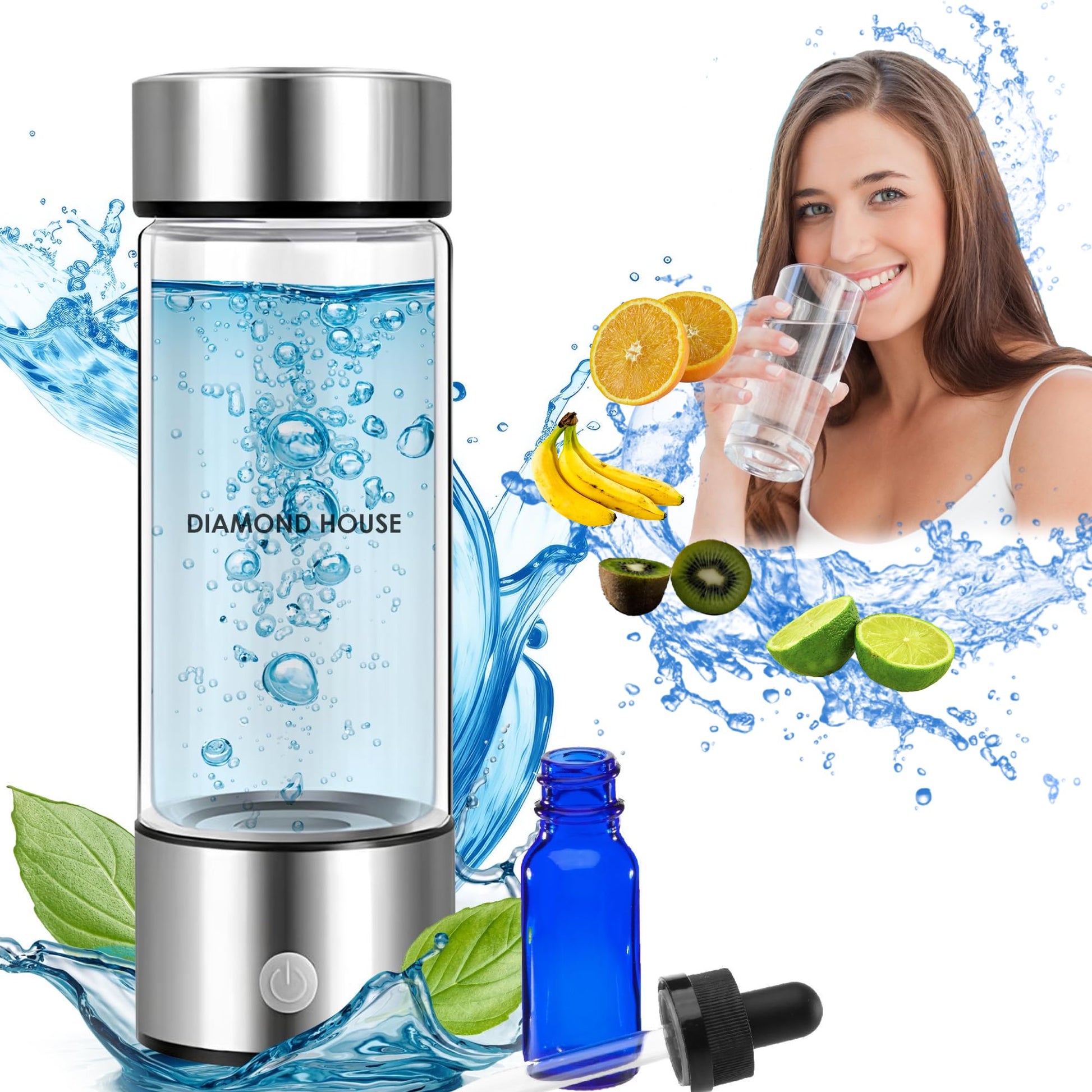 - HIGH QUALITY & HYGENIC: The Diamond House Hydrogen Water Bottle is constructed of high-quality glass, sanitary, crack-resistant, easy to clean, and odorless. Hydrogen-enriched water can improve mood, improve sleep quality, increase metabolism, and purify your blood.