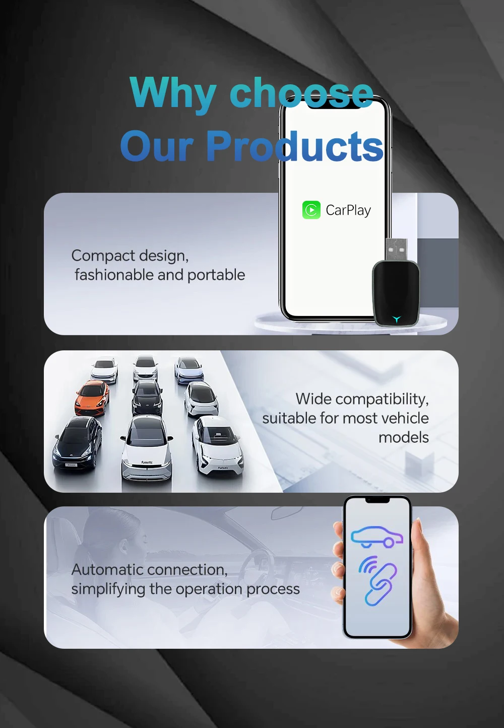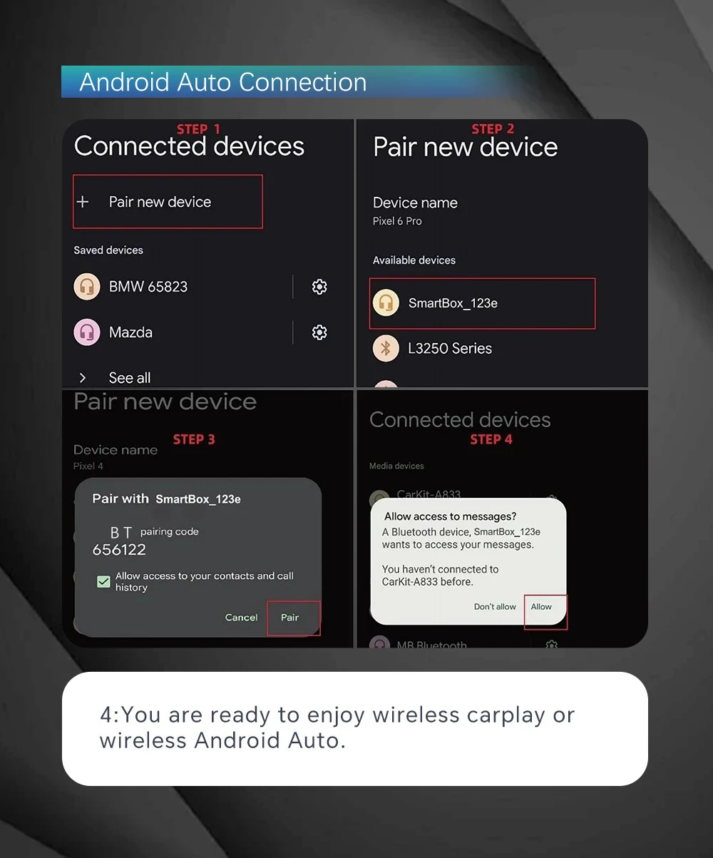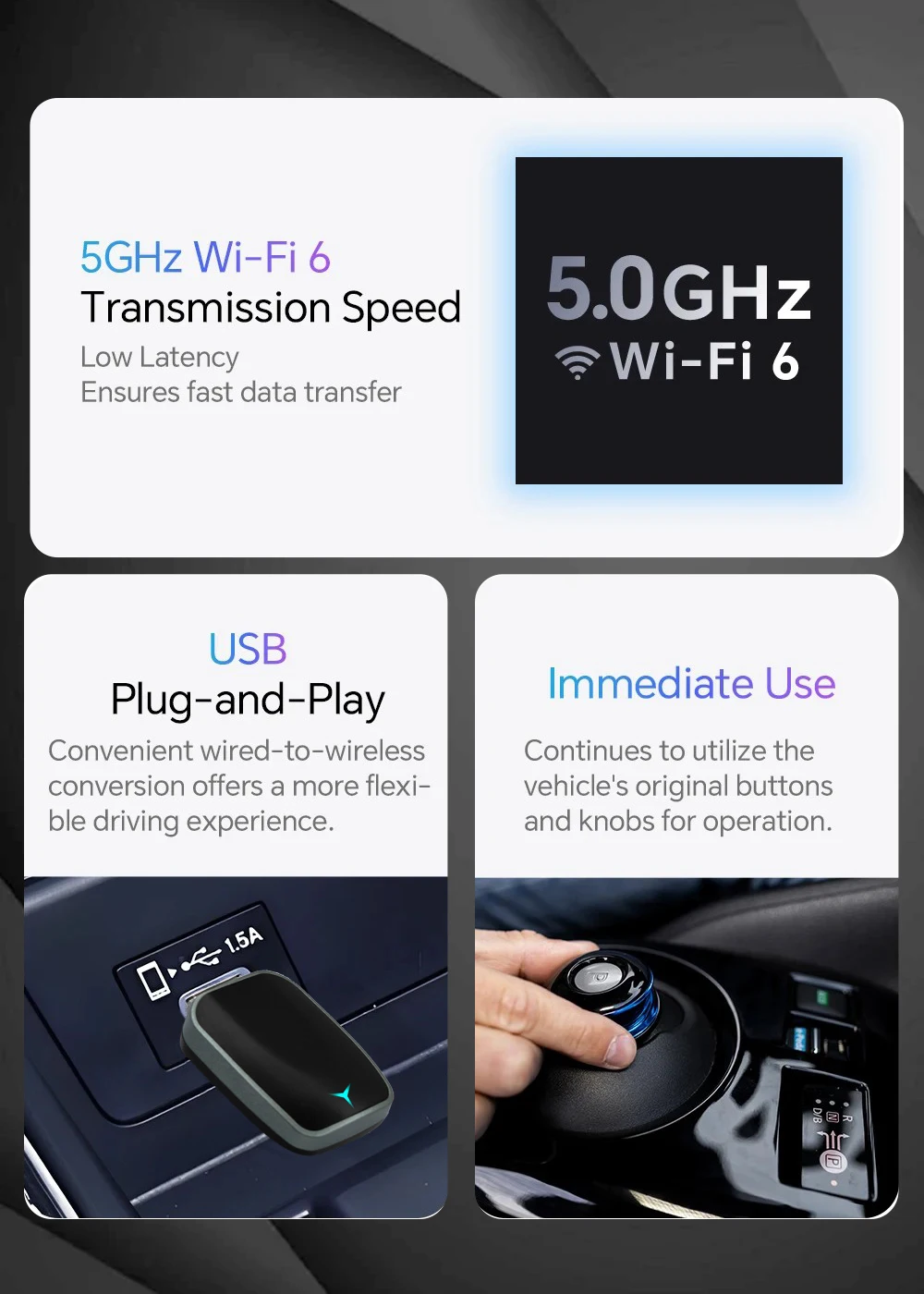 ✅【Wireless CarPlay】 Bluetooth pairing, WIFI transmission.