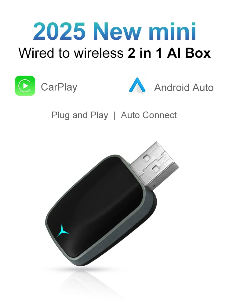 2025 NEW 2 In 1 Wireless Carplay AI Box Android Auto Plug And Play Applicable To Convert Original Car Wired Carplay To Wireless