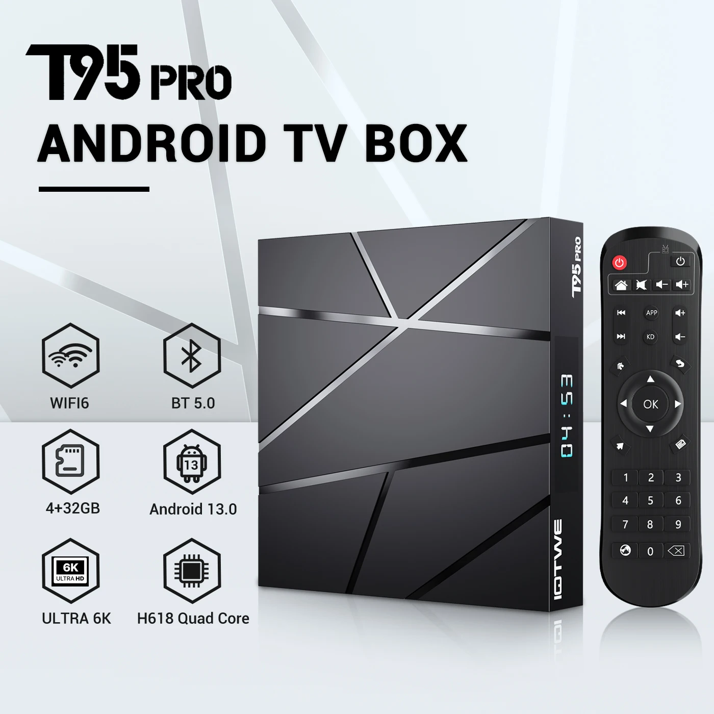 2025 New T95Pro Android 13.0 TV Box Quad-Core 4 GB+ 32 GB Bluetooth 5.0 WIFI6 6K HD Media Player