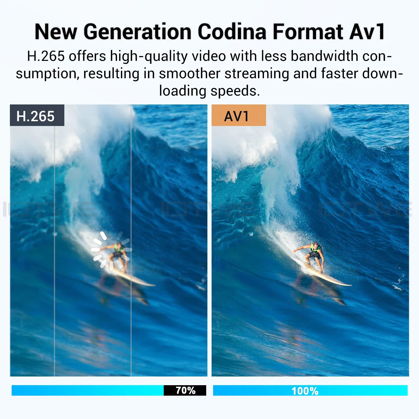 The Android TV box with Android 13.0 ensures stability and smooth loading of films, images and games without buffering. Experience improved performance and usability with a smooth and stable interface. With the powerful Allwinner H618 quad-core processor and advanced image processing technology, you can enjoy an outstanding experience with fast running speed and professional image quality. ă4GB RAM 32GB ROMă
