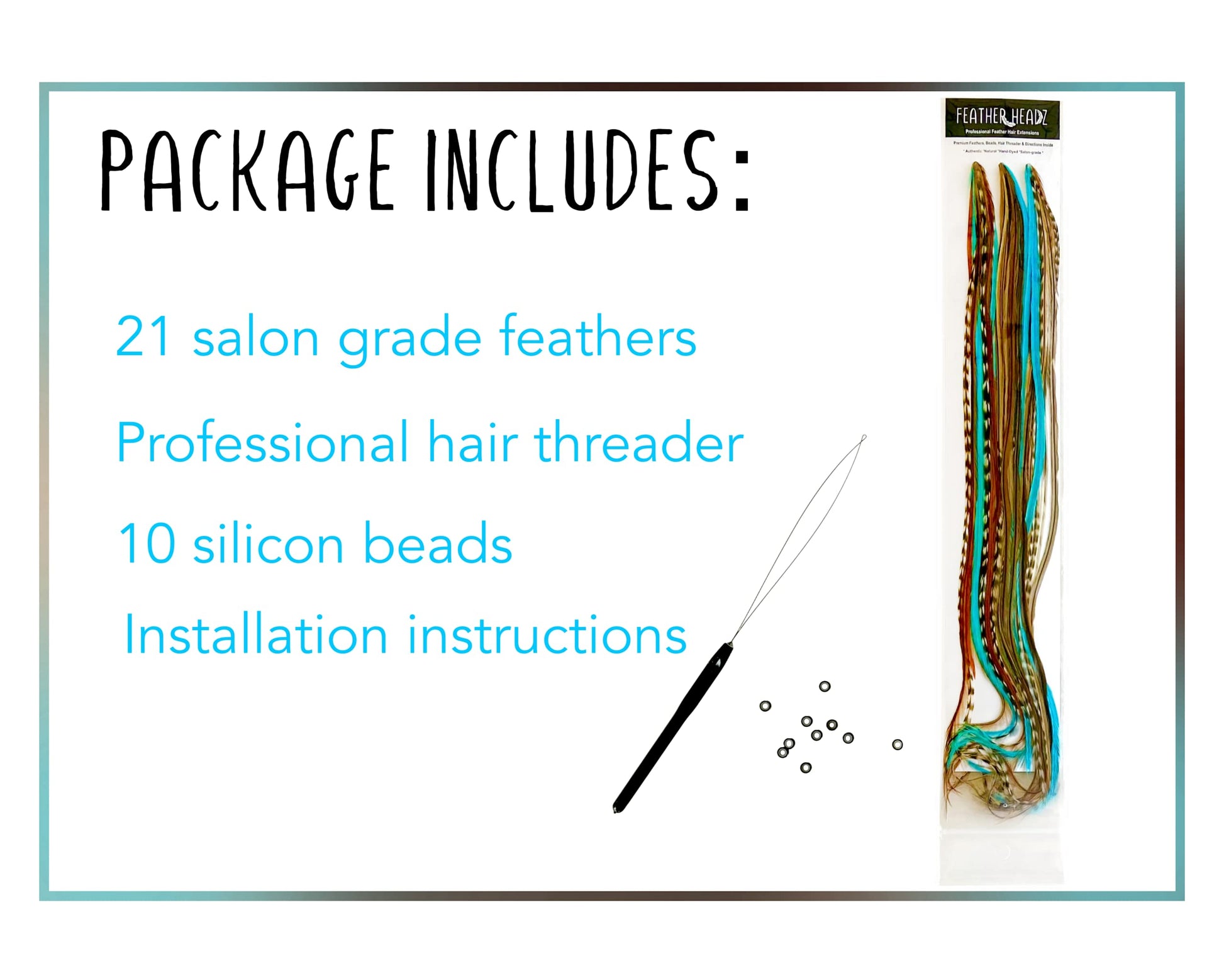 21 Natural & Turquoise Color Hair Feathers - 7”- 12” Long - Feathers for Hair Extension, Rooster Feathers DIY Kit - Eye-Catching Design - 20 Micro-link Beads - 100% Real Rooster Feathers