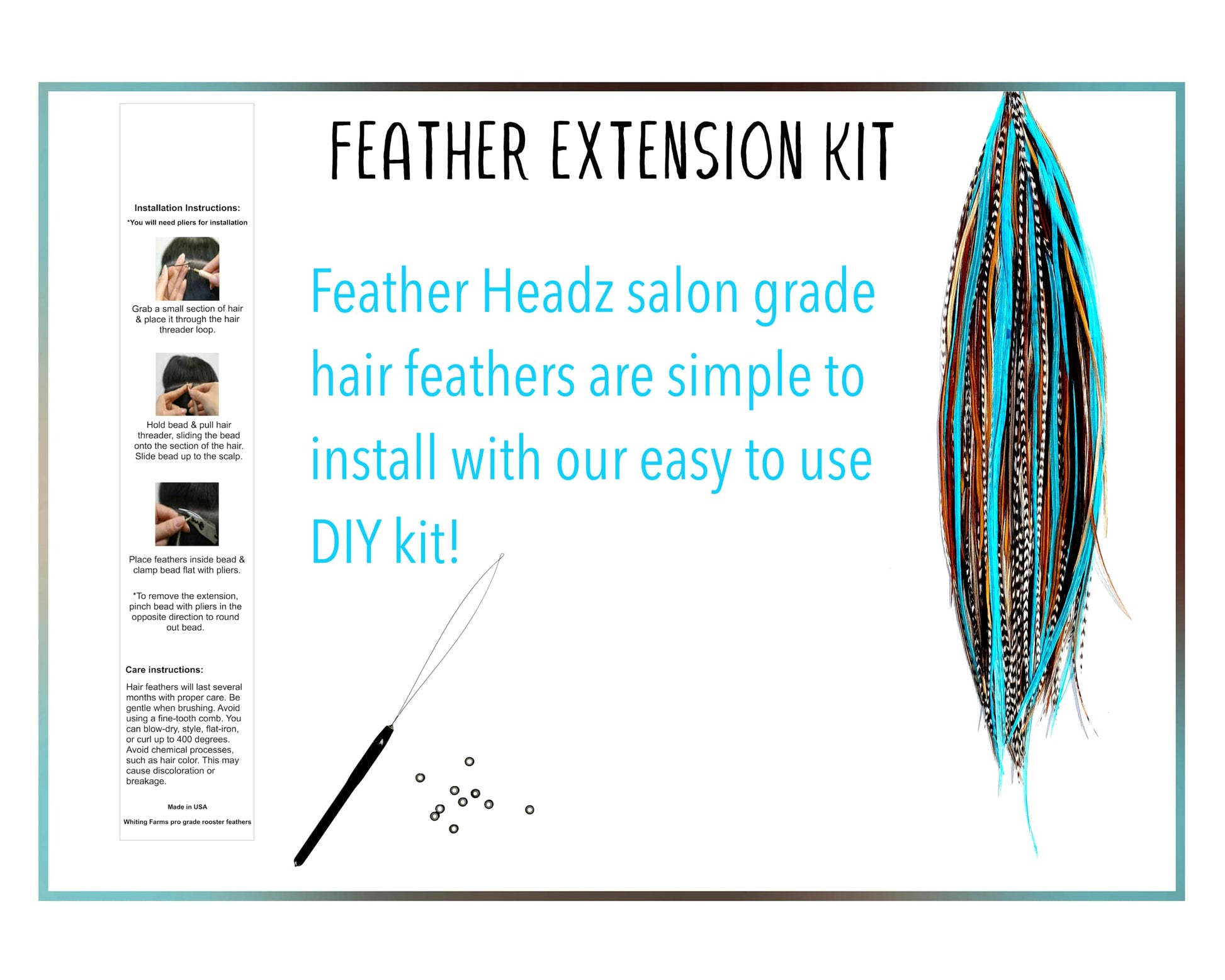 - Natural & Turquoise Color: Hair feathers are 7”- 12” long with Natural & Turquoise color. Once they grow out you can easily remove them and reapply back into your hair. Extensions are real rooster feathers. Get some now and add flair to your hair!