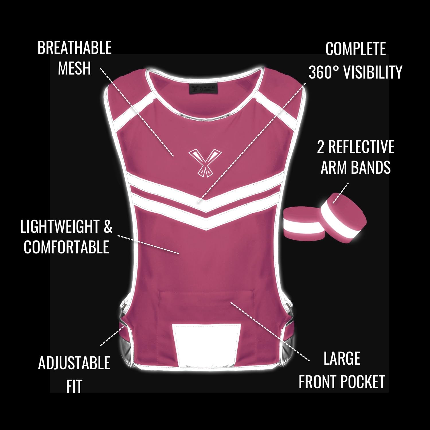 - Specially designed for the active, which means our vests donât chaff - Front pocket included, which is large enough for an iphone 6 or similar - Easily adjustable waist band - Reinforced stitching for increased durability - Ultra-Soft material for increased comfort - 360° reflectivity - Visible from further away - Great gift for fitness and outdoor lovers!