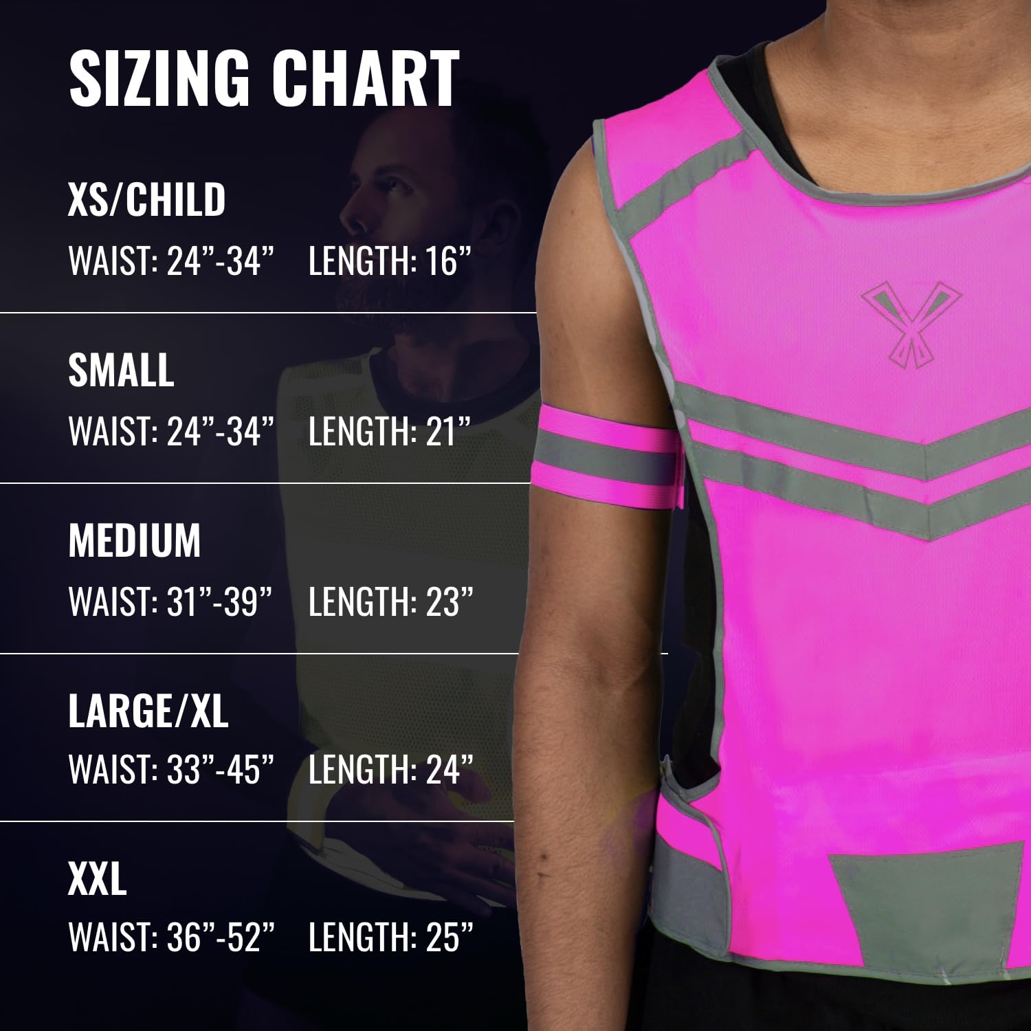 247 Viz Running Reflective Vest with Inside Pocket and 2 Bands, High Visibility Reflective Running Gear Safety Vest Straps for Men Women Kids for Night Running Walking Cycling