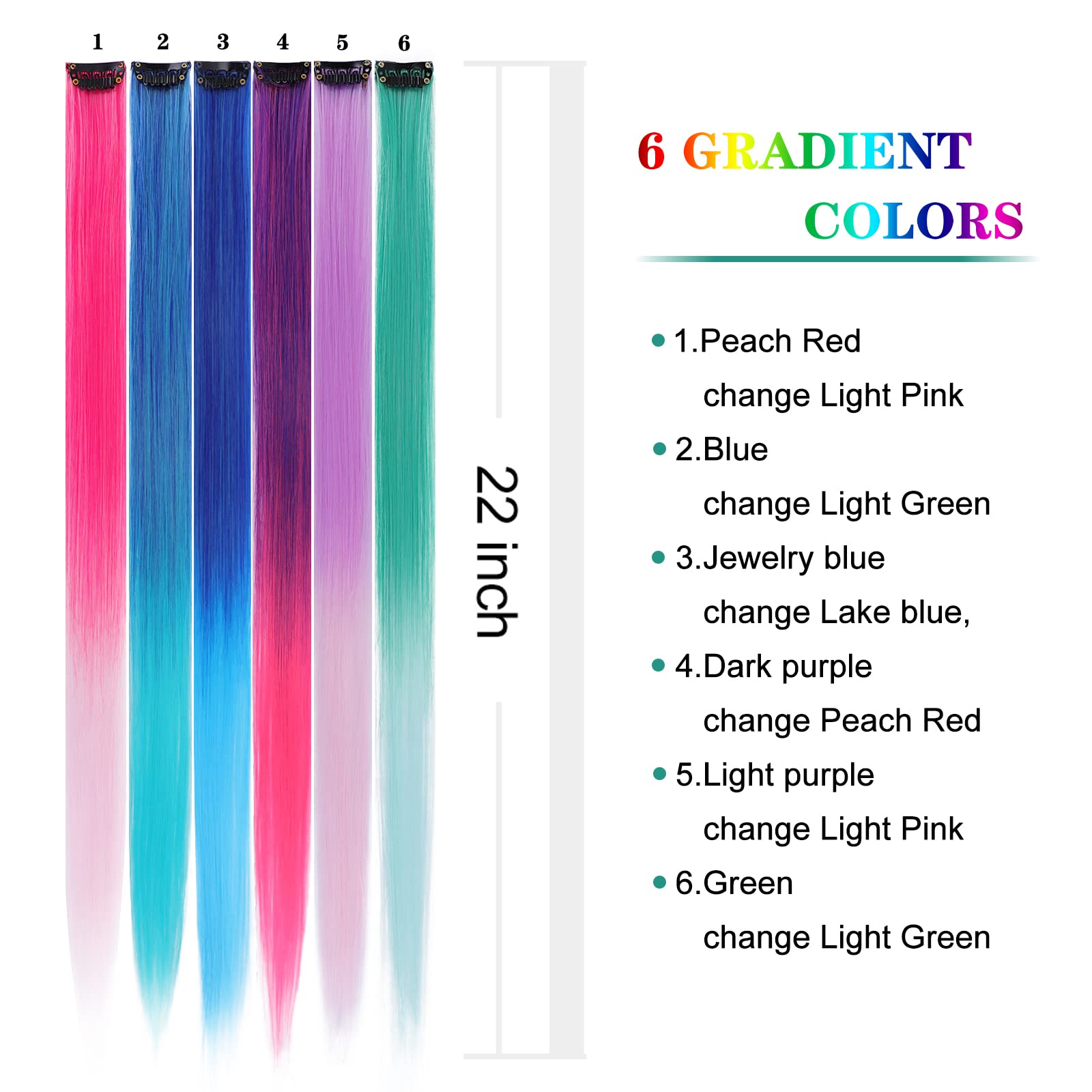 25 Pack Colored Party Highlights Clip in Hair Extensions for Women Kids Girls 22 inches Multi-colors Straight Hair Synthetic Hairpieces In The Party(25 colored)