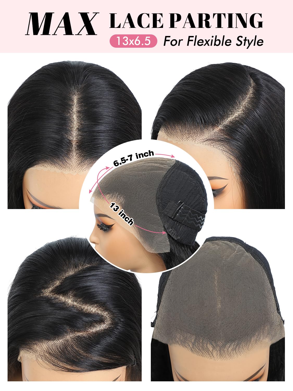 - 【250 Density Hd Lace Front Wigs Human Hair】---250% High Density Lace Wig, 6.5-7inch Deep Parting For Full Frontal Wigs,Also Larger Lace Square At The Side, Allow To Do Lots Of Different Hairstyle, Can Do Any Part Design. No Weft Seen When Parting, Pre Plucked With Baby Hair, Long Natural Hairline