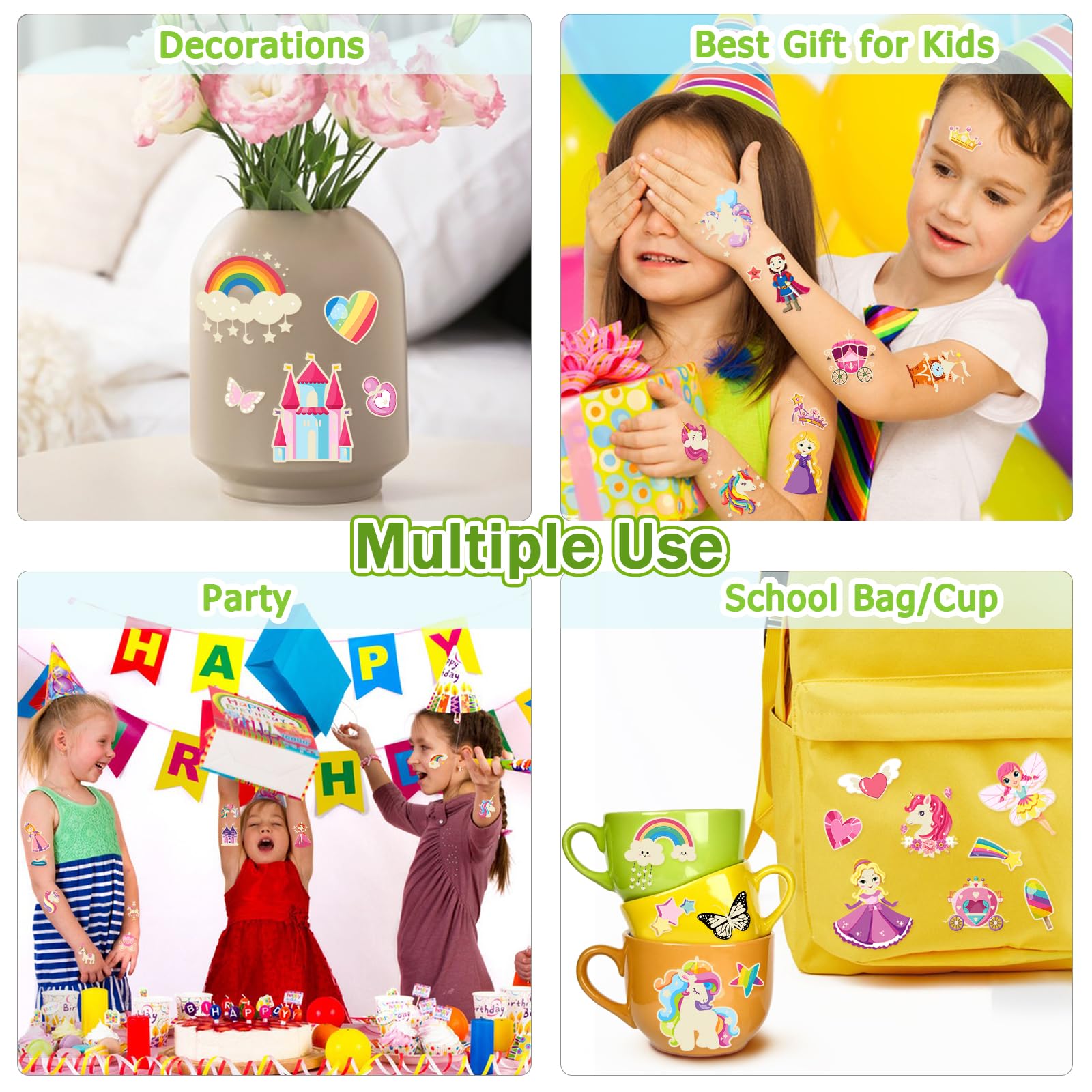- 【Kids Party Supplies】 36 sheets princess tattoos sticker set include variety of little boys and girls favorite characters, patterns include princess, rainbow, balloon, butterfly, rose, castle, candy, star, prince and more. create more fun for kids. Tattoos stickers for kids can meet different occasions parties, such as unicorn party, princess theme party, birthday party, halloween party, christmas party, etc