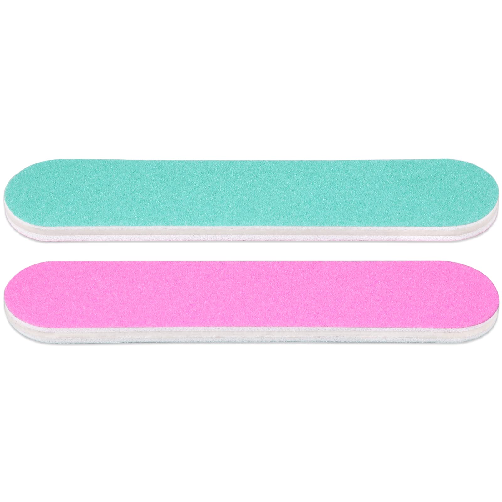 - Quantity: 25 pcs. | Color: Pink & Teal | Grit size: 80/80 | Measurement: Length: 3.54” Inches | Width: 0.79” Inches | Design: Mini Size Double-Sided Nail File