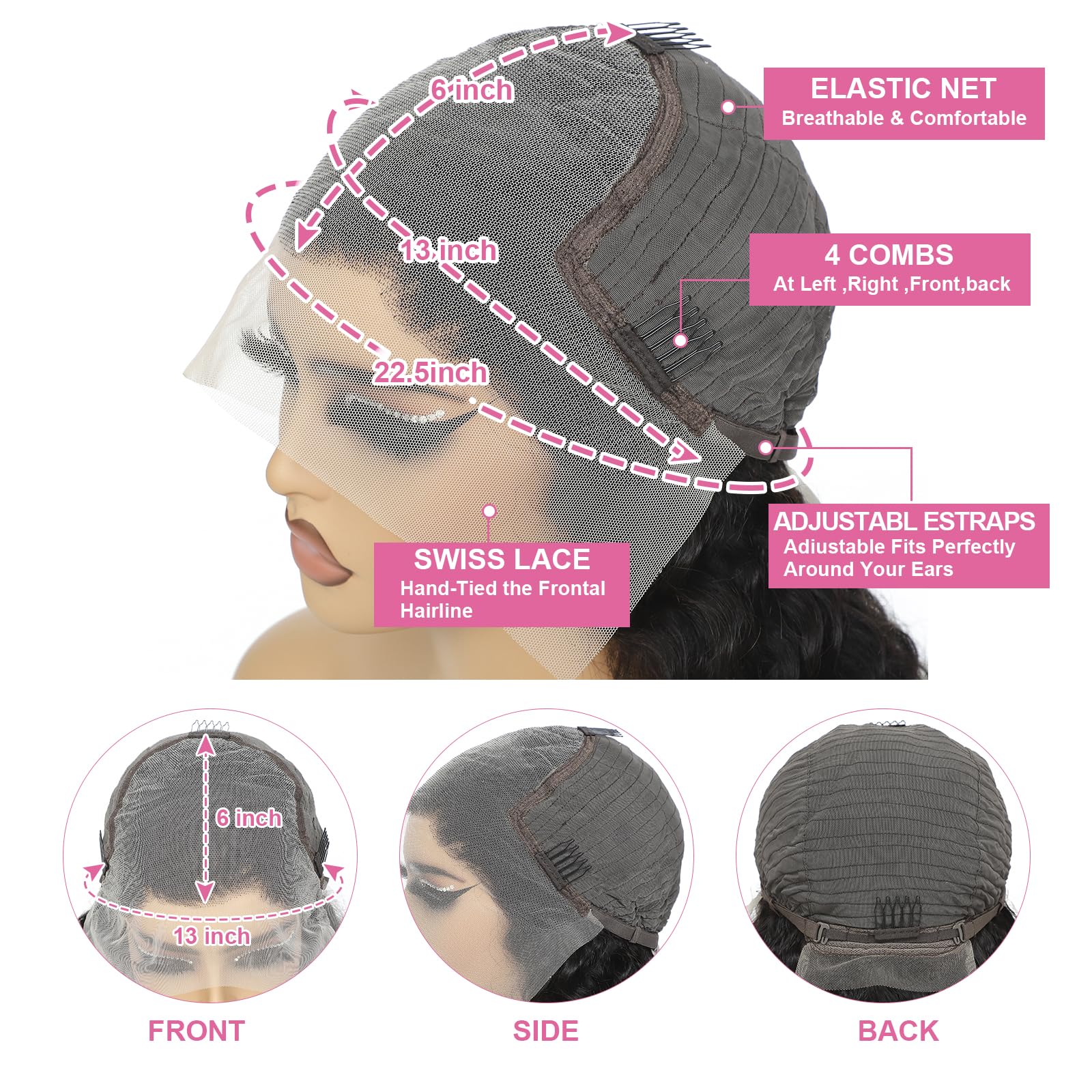 - 【Medium Wig Cap Size with Adjustable Elastic Band】Medium Cap Size(21.5-22.5 Inch), Ear to Ear 13X6 Transparent Swiss Lace has 4 Combs with Adjustable Elastic Band. Easy to Install and Adjust, Tight and Flexible. Fitting Most People's Heads Perfectly.
